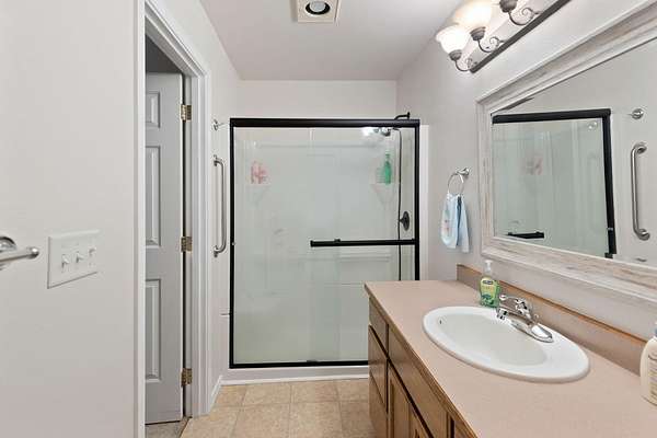 - Breakfast Bar, Ceiling Fan(s), Double Vanity, Tile Shower, Vaulted Ceiling(s), Walk-In Closet(s)
