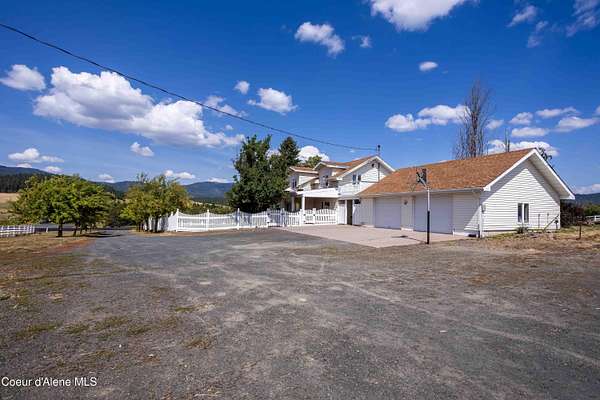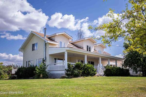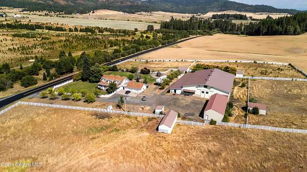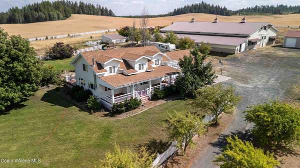 Your horse is saying ''Buy me this home!'' Stunning 10-acre Equestrian Estate spanning WA & ID on the Cd'A Reservation with sweeping views of Worley, ID and Rockford, WA. Outlined with classic white vinyl ranch fencing, this property features a spacious 3-bed, 3-bath home with master ensuite, loft, and unfinished basement. Classic Cd'A Casino carpet adorns the home, adding flair and nostalgia. Enjoy sunsets from the covered front porch and starry skies from the back deck, overlooking rolling hills, a custom fire pit, and expansive backyard. Equestrian amenities include a 120'x80' barn exceptional height with tack room, office, workout room, 5 stalls, full-size arena . Outbuildings: 4-bay shop (1 finished bay), 4-stall stable, multiple sheds, RV parking, chicken coop, fenced garden, & premium water filtration system in a dedicated pump house. Unlimited possibilities for luxury, lifestyle, & legacy in this gorgeous & peaceful setting!