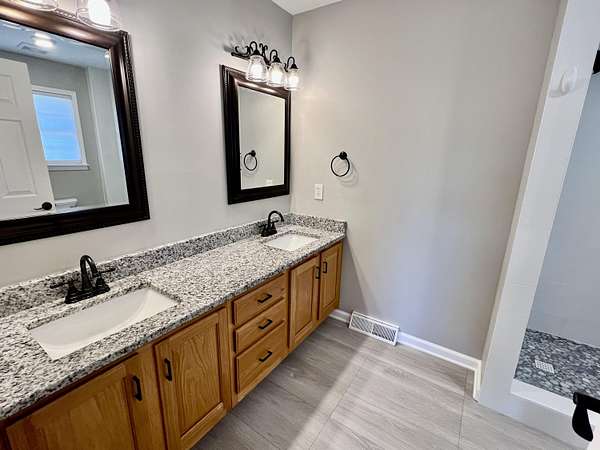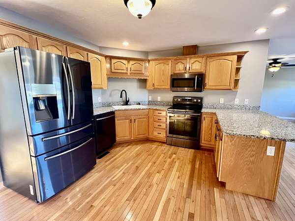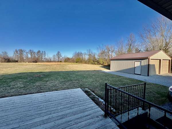 Amazing, immaculate brick home situated on a beautiful 2.6-acre cleared and level lot, offering approximately 2,800 sq. ft. of finished living space with room to grow. This well-maintained home features 3 bedrooms and 3 full bathrooms and provides a spacious, functional layout ideal for comfortable everyday living and entertaining. The main level offers a large, welcoming living room, a beautiful kitchen with abundant cabinetry, granite countertops, and stainless steel appliances that will remain. A formal dining room, foyer, and convenient utility room complete the main living areas. The primary suite is located on the first floor and features a gorgeous private bathroom with a stylish tile shower. Hardwood and tile flooring run throughout this level, adding warmth and timeless appeal. The partially finished basement expands the living space with a large family room/rec room, a bonus room with closet, and a full bathroom. Luxury vinyl flooring is featured in the basement, along with approximately 700 square feet of unfinished storage space that could easily be converted into additional living areas if desired. Additional highlights include an attached two-car garage and a 24x26 metal detached garage, providing ample parking, storage, or workshop space. The exterior is just as impressive, offering a pea gravel sidewalk, beautiful landscaping, a covered front porch, and a nice back deck perfect for relaxing or entertaining. The home is served by central heat and air and city water. This property offers the perfect blend of space, quality, and outdoor enjoyment-truly a must-see home.