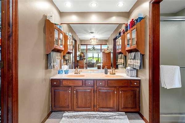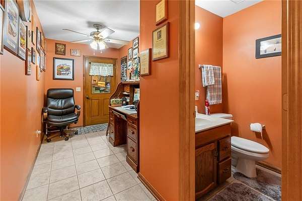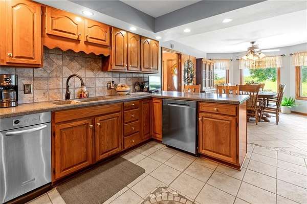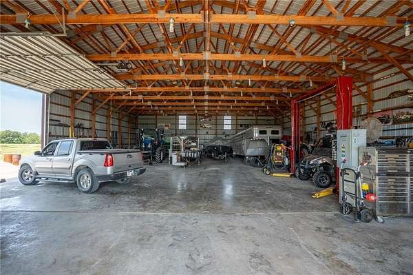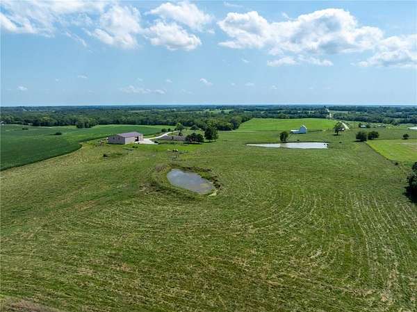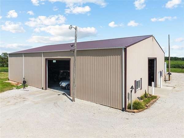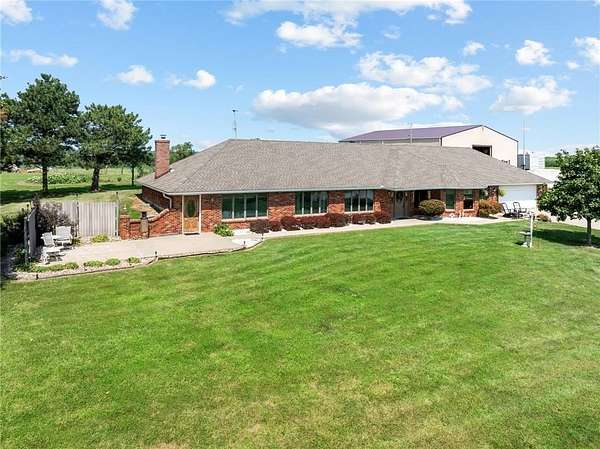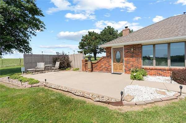 Reduced! 37 m/l Acres with Endless Possibilities! This all-brick earth contact home sits 1/2 mile off blacktop on gravel, offering both privacy and convenience. The property features 37 acres with three ponds, barns, lean-too's, and good fencing throughout. Inside, the home offers 3 spacious bedrooms, 2 full bathrooms, and 2 half bathrooms. A bonus room at the entry provides flexible space for an office, salon, bookkeeping, or other uses. The kitchen and dining area flow into a vaulted living room with a wood-burning fireplace, creating a warm and inviting atmosphere. A second fireplace adds additional charm in the primary bedroom. The bedrooms are generously sized with walk-in closets. Practical features include geothermal heating and cooling, nice kitchen with pull out drawers and large pantry, a large mudroom, and an oversized 2-car garage with attic storage. Outside, a 56' x 83' shop with tall 14' overhead electric doors, concrete floors provides excellent space for equipment or hobbies. Rural water is in place. This well-maintained property is ready to meet a variety of needs, from farming to recreation. Schedule a showing today-opportunities like this don't come often!