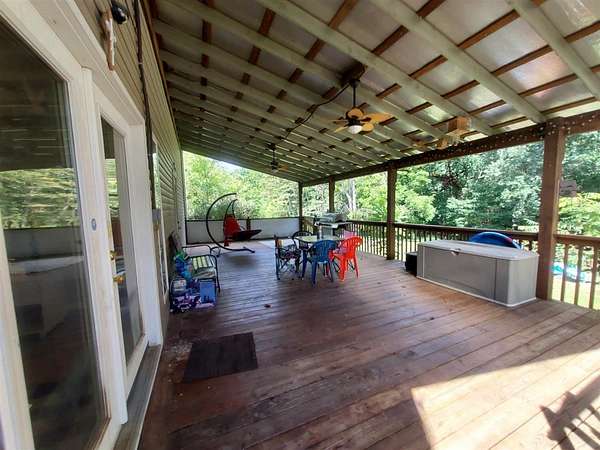 - Aggregate Walks, Barn, Covered Deck, Covered Front Porch, Fence, Garden Area, Landscaping, Mature Trees, Partial, Trees