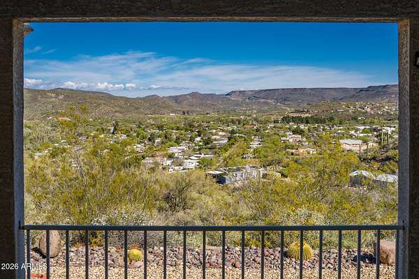 Est $3,177/moCustom built hilltop home situated on just under two acres of spectacular mountain views! Three bedrooms, two bathrooms with a den/office, electric fireplace, four car garage PLUS a shop and new interior paint! Large covered back patio to take in those views. Trees, Saguaros and Ocotillos abound, fenced garden area, no HOA and miles of trails welcome you home!