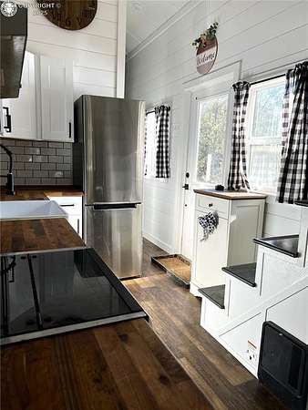 Tucked up in the serene mountains of Colorado, this charming tiny home offers the perfect escape from the hustle and bustle of daily life. Surrounded by towering trees and awe-inspiring natural beauty, it serves as a peaceful retreat just 15 miles from town. The property boasts a well-maintained, grated driveway, ensuring easy year-round access for a smooth journey to your very own sanctuary. Inside, the home is thoughtfully designed to offer a cozy yet functional living space. Equipped with solar power, a 1,000-gallon water cistern, and a mini split for both winter heating and summer air conditioning, it blends sustainable living with modern comforts. The tranquil surroundings and quiet atmosphere make this home the ideal spot for those seeking solitude, relaxation, and a deep connection with nature-all while being conveniently close to local amenities.