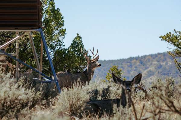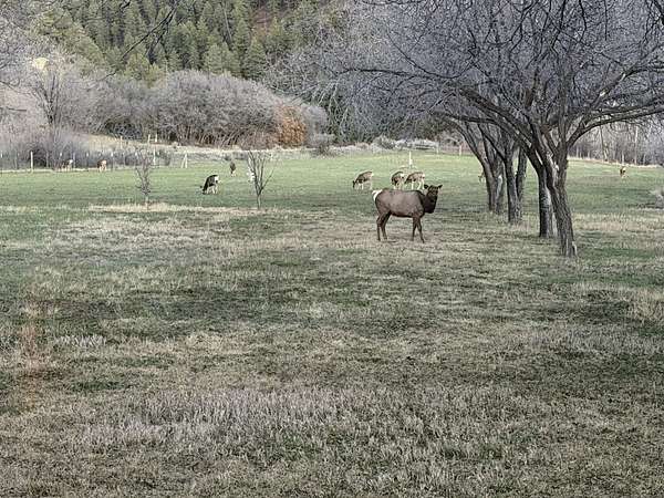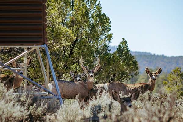 The ranch sits at the center of a vital fall migration corridor, providing forage that sustains local wildlife. Each year, between up to 15,000 mule deer pass through the property as they travel to their winter range near Navajo Reservoir. Elk also rely on this southern migration route to remain uninterrupted. While elk use the property year-round, their numbers increase significantly in the fall and winter months. During winter, groups of up to 200 elk can often be seen gathered in the hayfields. There are several box blinds on the property (both ground level and elevated) so you are ready to hunt on day one.