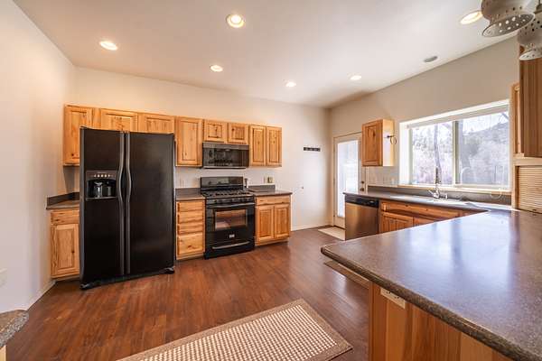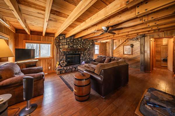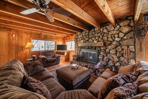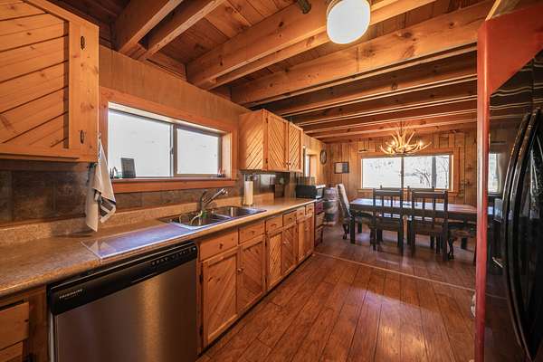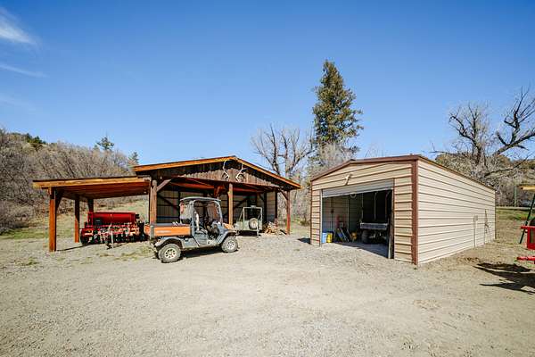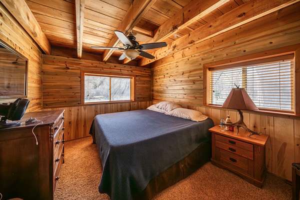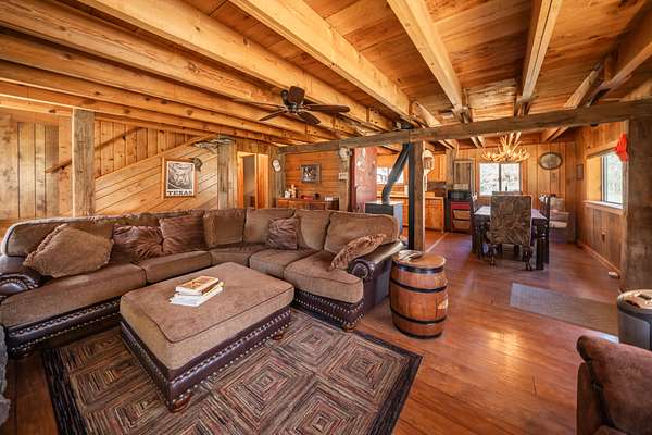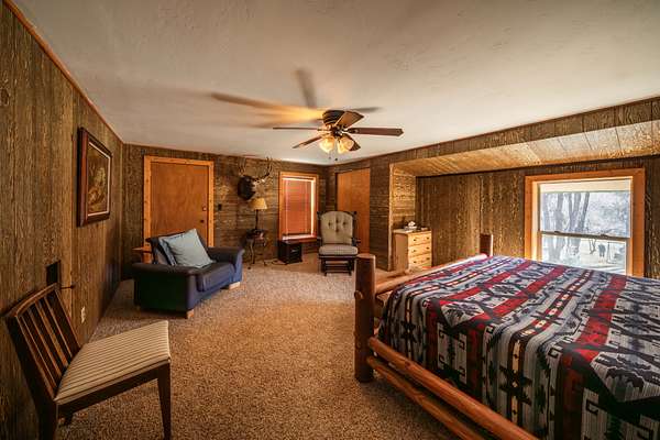 The secondary home is a two story, riverfront cabin of 2,173 square foot with its own detached, 2 car garage. This cabin boasts 5 bedrooms and 2 full baths. The bedrooms are all large and provide extra elbow room. Both the interior and exterior exude a rustic charm that fits well on the ranch. There are laminate floors throughout the main floor and a native stone, wood-burning fireplace in the living room to provide both warmth and ambiance on a cool evening. This residence also comes furnished.