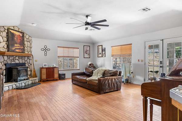 Escape to this beautiful 20-acre ranch retreat offering panoramic views and peaceful country living at its finest. This spacious 3-bedroom + den/office, 2-bathroom home features a bright, open floor plan designed for both comfort and entertaining. The kitchen overlooks the family room, creating a warm and inviting space perfect for gatherings. The living room boasts a cozy fireplace and a convenient wet bar--ideal for relaxing evenings or weekend get-togethers. The primary suite offers a private retreat with double sinks, a walk-in shower, and generous closet space. Additional bedrooms and are perfect for guests, remote work, or hobbies. Step outside and experience the best of country living! 20+ acres offer endless opportunities for recreation and agriculture. Equestrian enthusiasts will love the 6-stall barn, and fenced pastures, providing plenty of room for horses or cattle to roam. Additional features include a new septic tank, newer roof, air conditioning, dual-pane windows, and the home's own private well. Enjoy ceiling fans throughout and breathtaking views across the valley from every angle. This Tehachapi ranch combines rural tranquility with modern comfort--perfect for anyone seeking space, privacy, and endless possibilities. Don't miss this rare opportunity--schedule your private tour today!