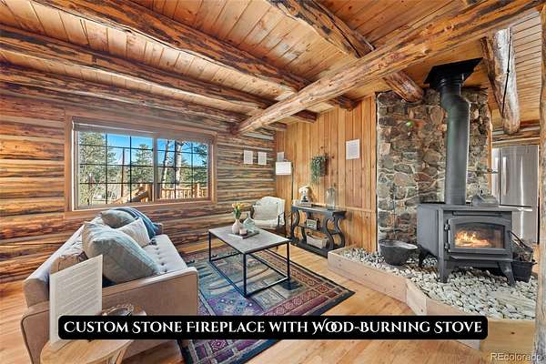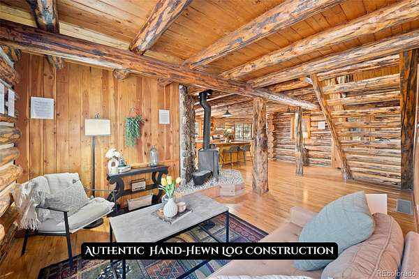 This is not just log-style construction, but a true hand-hewn, hand-scribed home built with full-dimension structural logs - craftsmanship that is increasingly rare & difficult to replicate. Exposed beams, handcrafted finishes, & a stone fireplace with a wood-burning stove all radiate mountain elegance. Multiple decks & a hot tub offer front-row seats to the tranquility of the hills, the sounds of the wind moving through the trees, & the occasional visit from local wildlife. The 3-bed, 2-bath layout lives effortlessly as a primary residence or second-home escape.
