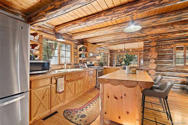 With no HOA & access via a publicly maintained road, the property offers year-round access w/out sacrificing privacy. Log homes are known for their durability & ease of maintenance when properly cared for, & this home reflects consistent ownership & upkeep. Updates include a forced-air furnace with Nest thermostat, new water heater & pressure tank, new decking, & a repaved driveway.