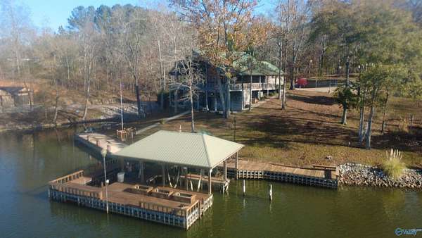 This beautiful home offers lake life at its best plus peaceful tranquility, gardening, storage and plenty of entertaining features. You will enjoy the 170 ft of lake front decking, fish cleaning station and feeding stations with 16'water depth at the private pier, with 5 out buildings, each with electricity, a fenced garden and a vegetable washing station. The home is nicely tucked away offering the most amazing access and view of beautiful Coosa River featuring a view in each room on a full lower level complete with a kitchenette, 2 bedrooms each with a private bath and a safe room. The main level features stainless appliances, beautiful view and access to the wrap around decking.