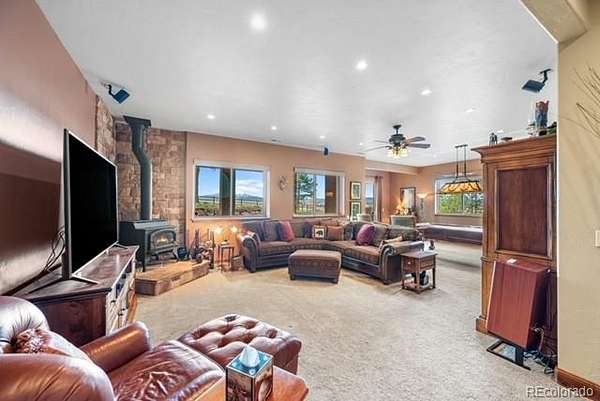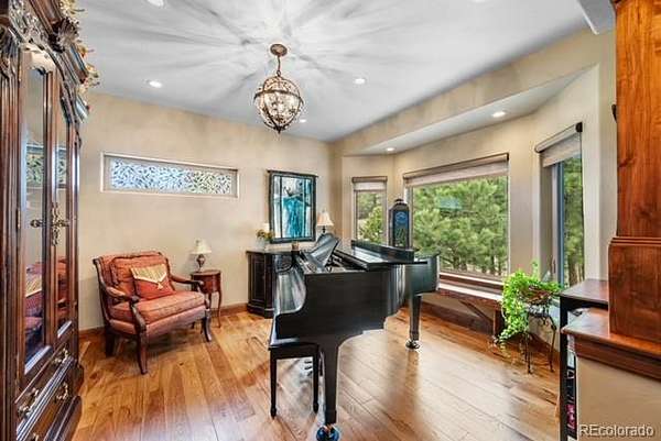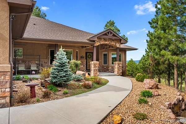 This is a custom built home with many personal touches designed to make your new home a peaceful haven from the stresses of life. Set on a little over 3 acre lot with unobstructed Peak Views from both levels yet sheltered in the trees to provide privacy & shade from the sun. Enter from a covered porch to a welcoming tiled entry that also houses entry to a formal dining room currently used as a music room and a home office that could be another bedroom if needed.