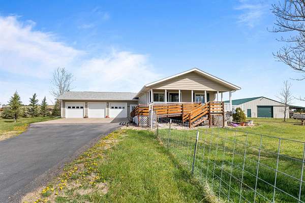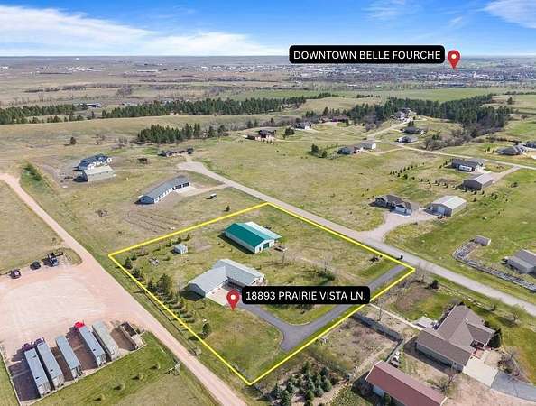Auction! Contact Jason Tysdal CENTURY 21 Spearfish Realty 605.641.7260 for details. Country freedom, shop space, and room to live the Black Hills lifestyle! Just 1.5 miles west of Belle Fourche, this 2.2-acre property delivers the space, functionality, and flexibility buyers are searching for. The 5-bedroom, 3-bath home offers comfortable main level living with an open layout, warm finishes, and abundant natural light. The kitchen flows seamlessly into the dining and living areas, perfect for everyday living or hosting, while the lower level expands your options with a large family room, additional bedrooms, and versatile space for guests, hobbies, or a home office. A 3-car attached garage adds everyday convenience, while the acreage provides the freedom to truly make this property your own. Step outside and take in the wide open views from the covered front porch, ideal for morning coffee or winding down in the evening. The landscaped yard, garden areas, and room to roam create a true country feel without sacrificing convenience to town. For those who need space to work, store, or play, this property shines! The impressive 42’ x 80’ post-frame shop with a 20’ x 48’ lean-to offers endless possibilities for equipment, toys, projects, or just all around fun use. Whether you're a hobbyist, contractor, or simply want room for everything, this setup is hard to find.