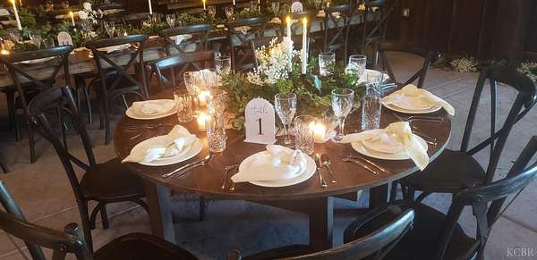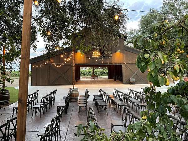 Grangeville Oaks Wedding and Event Venue Surrounded by beautifully mature oak trees and vineyards, this turn-key wedding and event venue is a MUST SEE. Licensed and legally zoned outside of city limits, within Kings County. A total of 5 acres includes approximately 3 acres of event space and buildings and 2 acres of vineyards (Rubired grapes). Since beginning operations in April of 2022 Grangeville Oaks has hosted an average of 45 events annually. The 2400 square foot event barn was constructed in 2022 with a 200 person capacity. This magnificent all wooden barn with a metal copper painted roof boasts five gorgeous chandeliers and four ceiling fans. There are two fully furnished historical homes on the property. First the Prairie House built in 1918 is a 2674+/- square foot prairie school architectural style home and serves as the bridal house with a large two-room bridal suite. In addition to the bridal suite, there are three other bedrooms for guests a formal dining room, living room, kitchen and more. Second the Tank House is a 1200 square foot, three story tank house converted into living quarters. This serves as a place for the groom to get ready and relax before the big event with two bedrooms, kitchen and game room. Overnight accommodations can sleep up to 12 between these two homes. We aren't done yet! Across from the barn there is the historical Corn Crib which has been converted into a fully functioning bar with beautiful live edge oak countertops. A shop for storage sits near the backside of the property and an additional building for storage of supplies is next to the Tank House. Also included with this property: 25 beautiful round wooden farmhouse tables, 25 beautiful rectangular wooden farmhouse tables, 200 cross back wooden reception chairs, 200 wooden folding teak ceremony chairs, dinnerware for 200 guests (China, two types of glassware, three types of flatware), a Gator tractor and OWNED solar. The picturesque event space, which is surrounded by vineyards has multiple ceremony spots and locations for pictures. There is ADA parking and a decomposed granite parking lot with recently finished asphalt easement. This venue is an established LLC with vetted contracts, a professionally designed website and strong social media presence with favorable reviews. Don't miss this great opportunity!