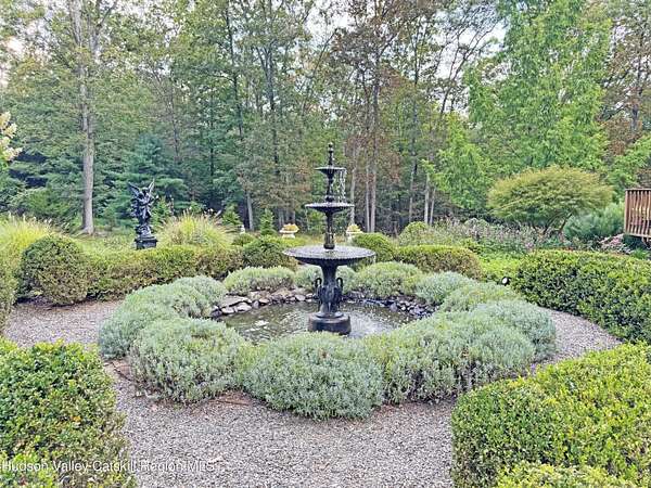 A Private 10-Acre Estate in the Heart of the Hudson Valley Tucked away at the end of a quiet country lane, this Cape Cod-style Colonial was crafted in 2003 by esteemed builder Jeremy Wells. Resting on ten pristine acres in Stone Ridge, the home combines timeless architecture, cedar shake details, and rock-solid construction with masterfully designed grounds for a lifestyle defined by elegance, privacy, and ease. The approach reveals manicured French gardens by renowned landscape architect Martin Berlinger, anchored by a sculptural fountain, meandering paths, and a Japanese garden retreat. A seasonal stream flows through the wooded acreage, enhancing the sense of seclusion. Inside, soaring cathedral ceilings greet you at the entry. Light pours through expansive Pella windows, framing garden views and filling every room with warmth. The home offers 3 bedrooms and 2.5 baths, including a serene primary suite with his-and-hers closets and vanities. At the heart of the home is a chef's kitchen with central island, custom cherry cabinetry, and stainless steel appliances, opening seamlessly to dining and entertaining areas. The living room centers around a push-to-start gas fireplace that can also burn wood-perfect for cozy evenings. Additional highlights include a spa-like bath with jetted tub, a partially finished basement with ample storage and flexible space, and a two-car garage. Outdoor living is complete with a sunny deck, inviting front porch, and a storage shed for tools and equipment. Set amid mature woodlands yet just minutes from Route 209, this property offers total privacy without sacrificing proximity to Stone Ridge, High Falls, and Kingston's cultural and dining scene. Whether as a full-time residence or weekend retreat, 189 Bush Road is a rare opportunity to own a builder-crafted home with signature gardens on one of the Hudson Valley's most picturesque landscapes.