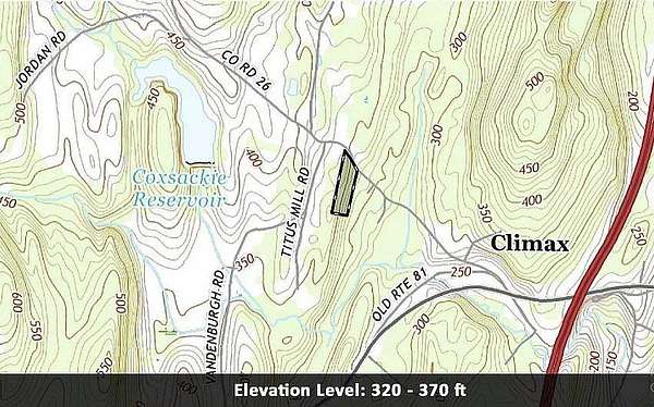 Est $588/moNestled in the scenic Catskills in Climax, NY, this 3.27-acre haven is the ultimate canvas for crafting your dream home. With grid electricity and an established driveway, it's already set for your vision to take shape. Located just 11-minutes from the serene Coxsackie Reservoir, and 15 minutes from Greenville-Rainbow Airport (1H4), the property offers both convenience and accessibility. Sitting at an elevation of 320-370 ft, with direct access to County Route 26, this slightly sloped land is ideal for a variety of build styles. Surrounded by year-round recreational opportunities, breathtaking nature, and vibrant seasonal landscapes, this is the perfect plot to bring your future home to life.