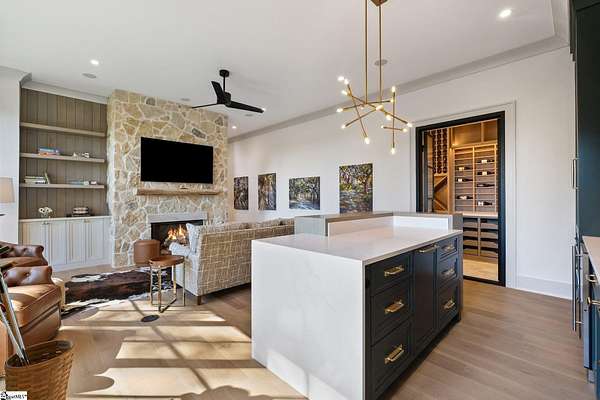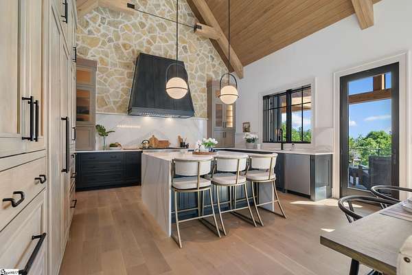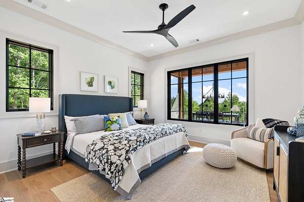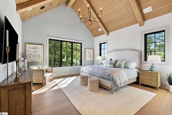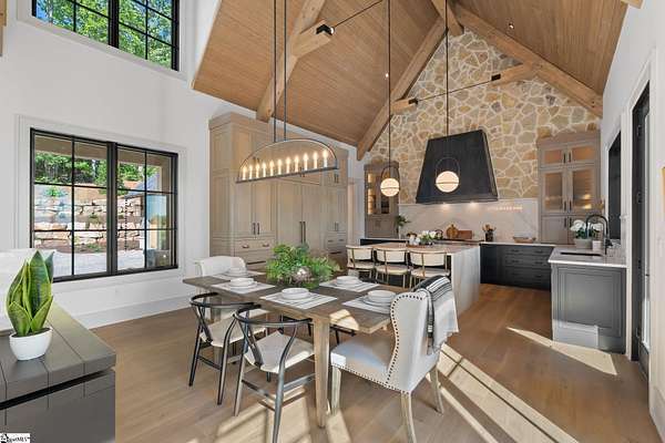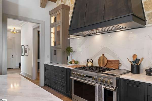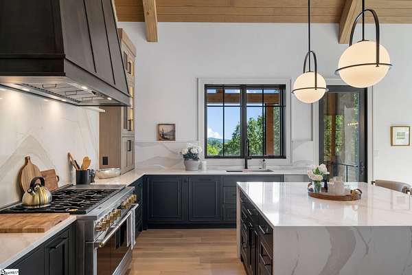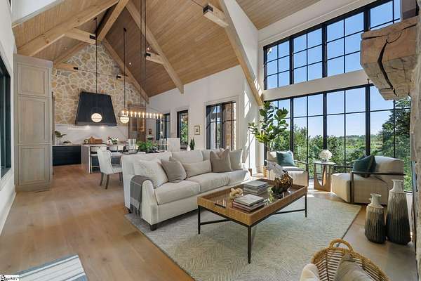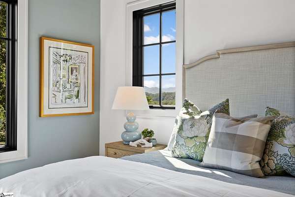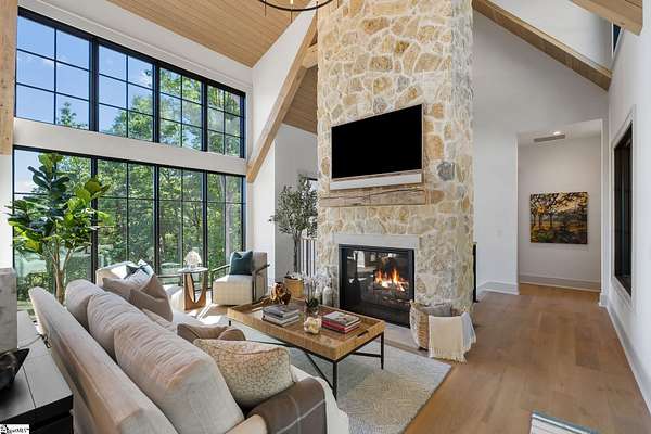 Discover a home where timeless quality meets mountain elegance. 189 Crowne Hill Way, completed in May 2025 by 2024 Pinnacle Award winner, Fairview Custom Homes, is nestled at the end of a quiet cul-de-sac in The Cliffs at Mountain Park. With exceptional craftsmanship, views of Paris Mountain, & refined outdoor living spaces, this custom retreat offers the perfect balance of luxury, privacy, & natural beauty in one of South Carolina's most prestigious gated communities. As you enter through the full view steel front door, the grandeur of the interior unfolds with soaring vaulted ceilings, elegant wood beams accented with steel ties, & a fully surrounded stone fireplace that anchors the great room. Expansive windows frame the views & flood the space with natural light, creating a seamless connection between indoor & outdoor living. The adjacent outdoor living area extends your living space with Timbertech decking, a second stone fireplace, retractable screens, an outdoor grill deck, & a steel spiral staircase leading to the lower level. Whether you're entertaining guests or enjoying a quiet evening under the stars, this space offers a perfect retreat for every occasion. Inside, the open-concept main floor effortlessly combines style & function. The chef's kitchen is a centerpiece, boasting a waterfall island, Monogram & Bosch appliances, a six-burner gas cooktop with griddle, & custom cabinetry that provides both beauty & utility. The walk-in butler's pantry is an ideal prep space, featuring a built-in microwave, sink, & glass-door beverage fridge for added convenience. The luxurious primary suite is a true sanctuary, showcasing a cathedral ceiling, expansive windows, & a spa-inspired bathroom complete with a soaking tub set against a striking stone backdrop, a walk-in shower, & a spacious walk-in closet. This private retreat offers both comfort & elegance in equal measure. A large laundry room with pull-out drying racks, extensive cabinetry, & ample counter space adjoins a thoughtfully designed drop zone with a built-in bench & storage. The attached two-plus car garage caters to both storage & recreational needs. A spacious & sunlit en-suite bedroom, a charming powder room, & a home office, featuring built-in shelving & wood ceiling, complete the main level with character & charm. Descending the staircase adjacent to the stone-wrapped fireplace, the lower level continues to impress. This level is thoughtfully designed for both entertaining & relaxation, featuring a generous living space, a built-in bar with a two-tier island with illuminated glass cabinetry offering ample storage, as well as a climate-controlled wine room with capacity for 400 bottles. Two additional bedrooms & a large recreation room, all well-appointed & adaptable, provide ample space for guests, a gym, or a studio. The lower level also includes a second utility room, offering another laundry space, built-in lockers, & additional storage. Pocket glass doors open to a covered patio with a fourth stone fireplace &an adjacent three-hole putting green, adding to the home's outdoor recreation options. Additional features include; Apple TVs on all screens, Lutron controlled lighting, heating & A/V preset control tower, built-in speakers throughout, fully poured porch foundations & lower-level walls, epoxy-finished mechanical rooms, &a secure safe room located beneath the front porch. 189 Crowne Hill Way offers a lifestyle of mountain serenity & modern luxury. Just minutes from The Cliffs at Mountain Park gate off Highway 11, it combines convenience with natural beauty. Meticulously crafted & thoughtfully designed, this home embodies the pinnacle of mountain living in one of South Carolina's most sought-after communities. Furnishings available on separate bill of sale. Purchase includes a required leaseback, terms & duration to be determined. A Club membership at The Cliffs is available for purchase with this property giving you access to all seven communities.
