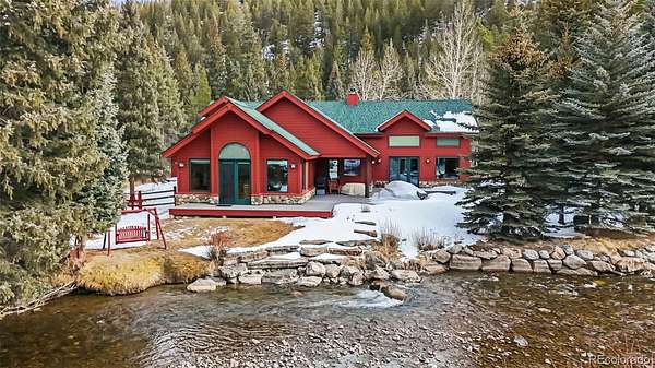 Perched on the banks of the tranquil Blue River, this once-in-a-lifetime 10 acre opportunity offers an unparalleled blend of privacy, nature and proximity to adventure, providing a perfect setting for memories to be made for generations to come. Located just 10 minutes from both Breckenridge and Frisco, shopping and eateries are just moments away; yet, the home’s backyard offers direct access to the legendary fly fishing waters of Colorado. Spanning generous acreage in a private enclave, this retreat is a true multi-generational haven — an ideal compound where the harmonious coexistence of nature and luxury is front and center. The heart of the home is a breathtaking vaulted living room with expansive windows that frame stunning river views, inviting in natural light and complemented by cozy gas fireplaces throughout. One of the home’s two primary suites boasts direct access to the river, creating a private oasis, while a second primary suite with an en-suite bath ensures luxurious accommodations for guests. Ideal for entertaining, the home features an attached bunk room, a spacious upstairs game area that overlooks the living room, and a detached 2-car garage with loft space. A separate caretaker’s residence ensures seamless upkeep, completing this rare invitation to experience luxury living along the Blue River.