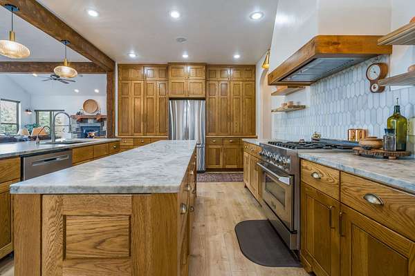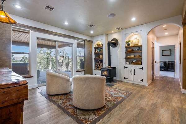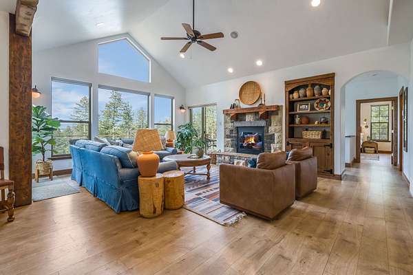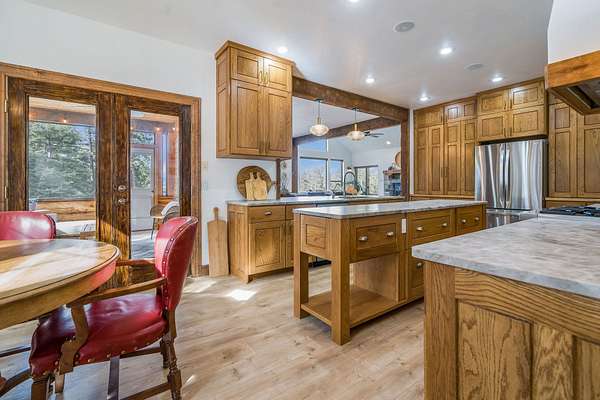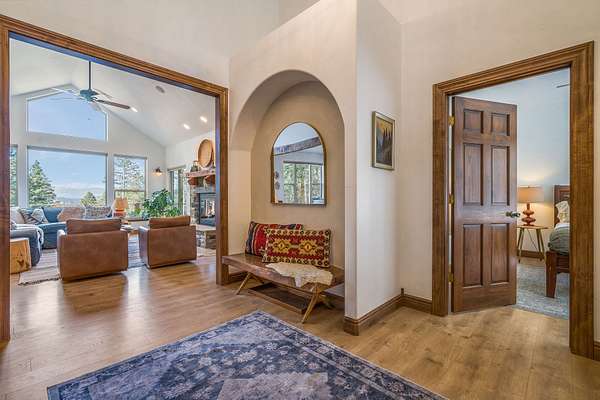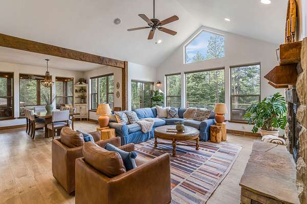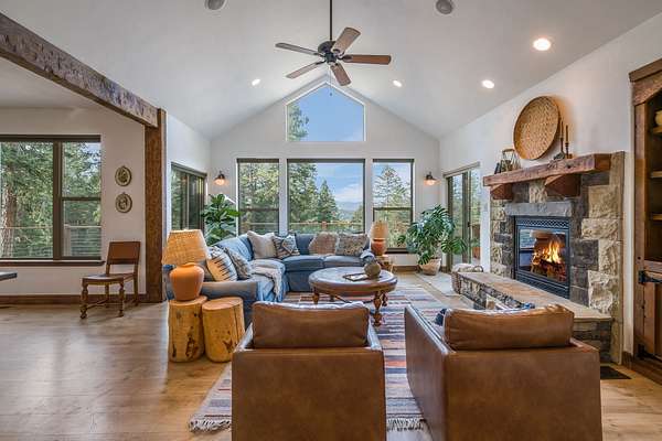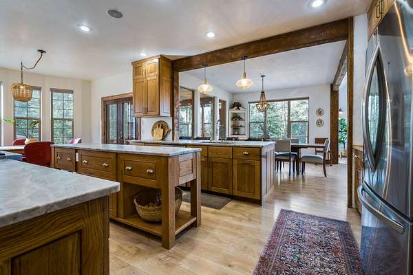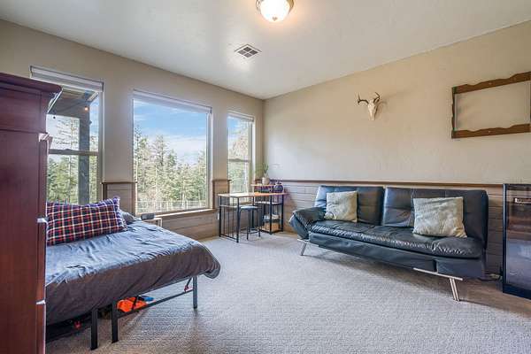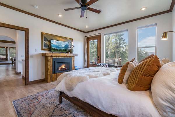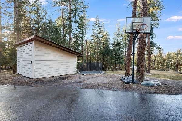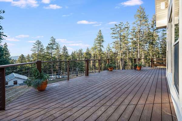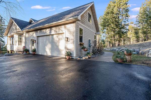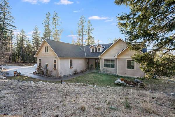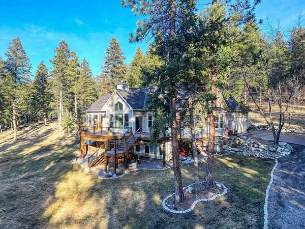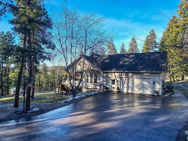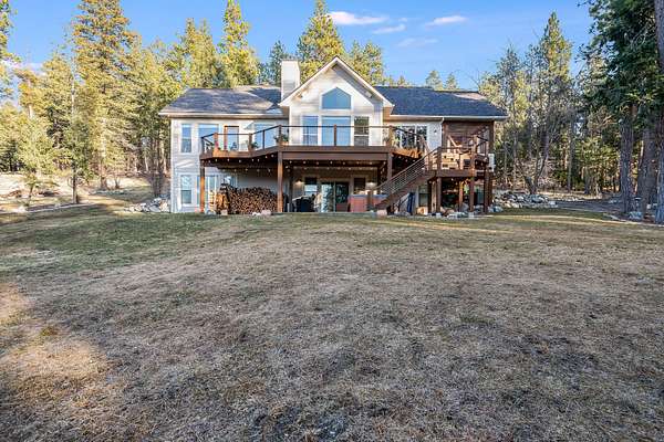Discover Your Sanctuary Near Foys Lake and Lone Pine State Park.On 5 park-like acres, 5-bedroom, 4-bath home offers the perfect blend of main-floor living and outdoor adventure. Oversized windows bathe the kitchen, dining and living room in southwestern light, a cozy fireplace and an open-concept. The main level features a serene primary suite with a soaking tub, double closets, plus an additional guest suite.Walk-out lower level adds two additional bedrooms, bathroom, a spacious family room, office and gym/craft room. Outside, life centers around a massive west-facing deck-ideal for sunsets, a screened-in porch and firepit. Above the garage is a charming studio apartment for guests. The acreage has a mini-barn, irrigated garden beds/orchard with fruit trees blueberries and raspberries and your own hiking\ biking trail. The approx. 1/2 mile long community bridle path connects to your trail and leads you toward Lone Pine State Parks trail system. Community tennis courts. Agent Owned.