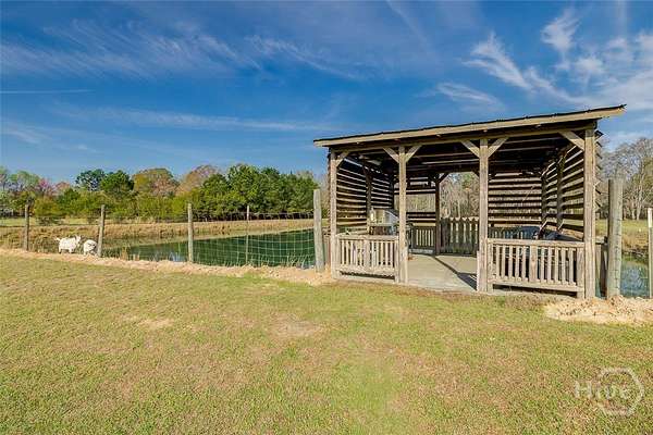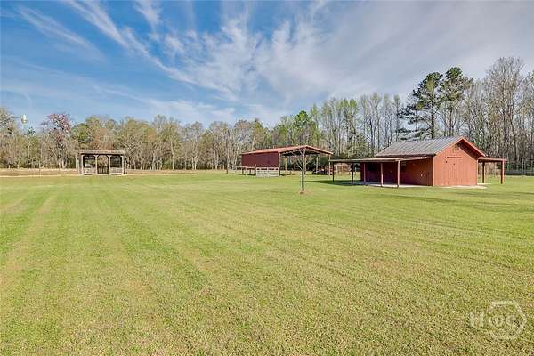 Bring the family and the pets! This 6.69-acre property offers plenty of space and features a pond with covered dock, 50x33 pole barn, 10x27 barn with two bays, fencing, and mostly open land ideal for horses, livestock, or other animals. The 3 bedroom, 2 bath brick ranch with metal roof features a large eat-in kitchen, separate dining area, and a great room with fireplace. Glass doors from the dining area lead to a covered back porch overlooking the pond and pasture, providing beautiful views and a perfect spot to relax and enjoy the property. Grapevines provide grapes for snacking or make your own wine! And there are tons of blackberry bushes for the same. Are you a gardener? You have plenty of room for your favortie veggies and fruits!