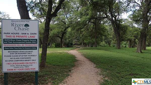 EXCELLENT Opportunity in one of New Braunfels' most charming communities! Don't miss your chance to own a gorgeous, tree-covered 3+ acre corner lot with breathtaking views in the sought-after River Chase subdivision! Nestled at the end of a private, low-traffic street, this premium lot offers peace, privacy, and the perfect canvas to build your dream home in the heart of the Texas Hill Country. Located between Gruene and Canyon Lake, River Chase is known for its spacious lots, natural beauty, and exceptional amenities-HOA dues just $300/year! Property owners enjoy access to a 58-acre gated private river park on the Guadalupe River with a covered pavilion and picnic areas *AND* a 38-acre clubhouse complex featuring 2 swimming pools, lighted tennis courts, a fitness center, and walking trails. There is also a stocked fishing pond for catch-and-release fun! Deed restriction minimum of 1,800 sq ft for single-story homes and 2,200 sq ft for two-story builds. This is a rare opportunity to secure a prime homesite with mature trees, rolling topography, and hill country views in a prestigious and well-established community. Bring your builder and your vision-your Hill Country dream starts here!
