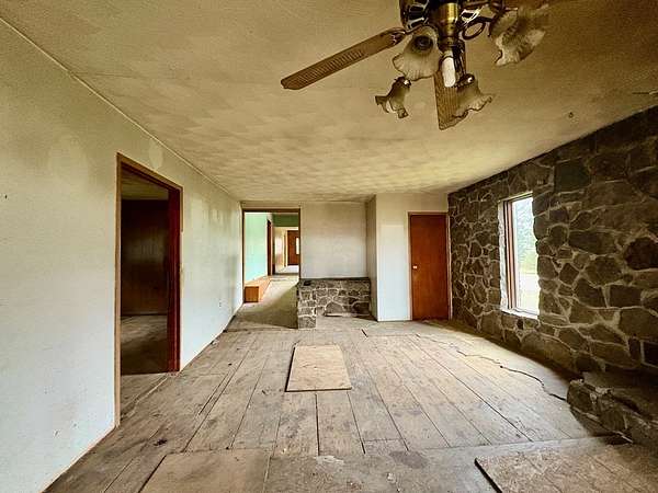 A handyman special on 27 acres! Bring your tools and imagination to breathe new life into this hidden gem. Property features a ranch style home, 3 bedrooms, a cozy family room with a fireplace, open kitchen area , a 2 car garage and 2 covered porches. This home is packed with potential. Whether you're looking for a quiet escape, a flip project, or a private homestead, this is a rare opportunity to own a large piece of land with a solid foundation already in place. This is a bank owned property. Please allow for 3-5 days for a response.