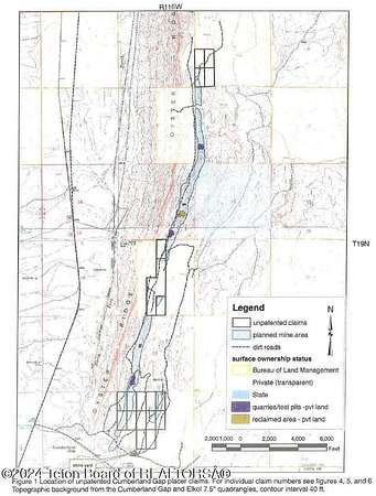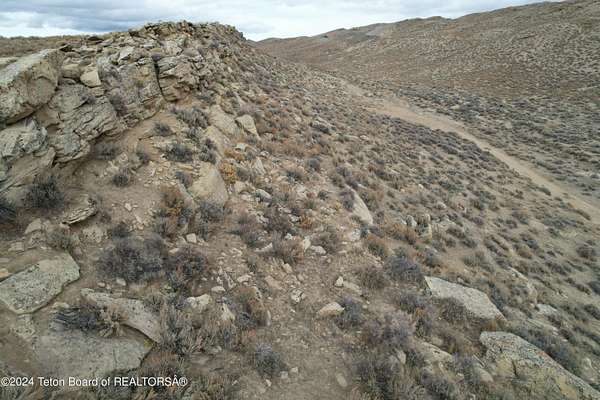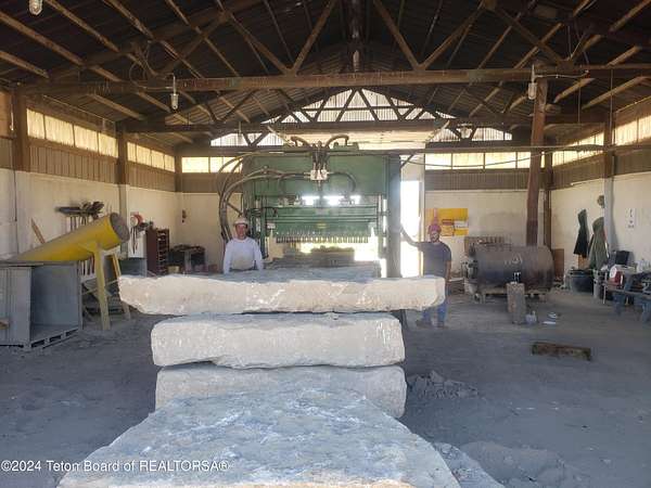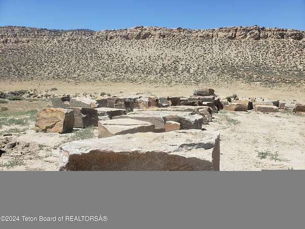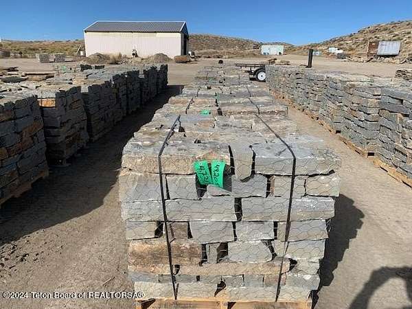 Cumberland Gap, was on a cut-off of the Oregon Trail and small coal mining town (circa 1910) supplying the OSL railroad through the 1930s. It is located about 15 miles south of Kemmerer WY. Cumberland Gap Hearth Stone Inc. is the selling owner of a rock quarry that includes about 7,OOO acres of (40 private), Wyoming State and BLM leased lands subject to recorded mineral claims. CGHS Inc. is a family business that has been in operation for 38 years. The quarry runs year round, to supply architects, residential, commercial builders and road building contractors with high quality rock materials. A highly sought after, beautiful, uncommon sandstone is surface mined from sandstone seams that stretch about 4.5 miles across the high desert ridgelines. CGHS is a wholesaler of other products that include: flag stone, large square boulders, chop stone, cap stone, stair treads and rip rap for road and levee construction. The cut products are loaded on pallets and the sandstone is loaded as large slabs. Each trailer load is about 50,000 pounds or 25 tons. Historically, annual production has been about 5,000 tons per year, with a gross sales value of about $1,100,000. The inventory for future production is limited only by the amount of capital invested in production and availability of labor. The mined acres are reclaimed to industry standards as the quarry operations move. More financial and market demand information, mining leases/permits and quarry reserve estimates are available from the owner. The rock processing building & shipping yard are on leased land (est. 3 acres), the lease is negotiable. The mining heavy equipment is available for purchase at market prices, list prepared by owner.