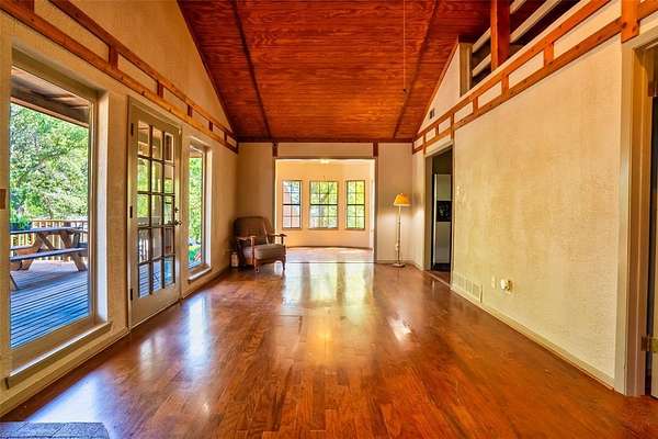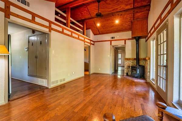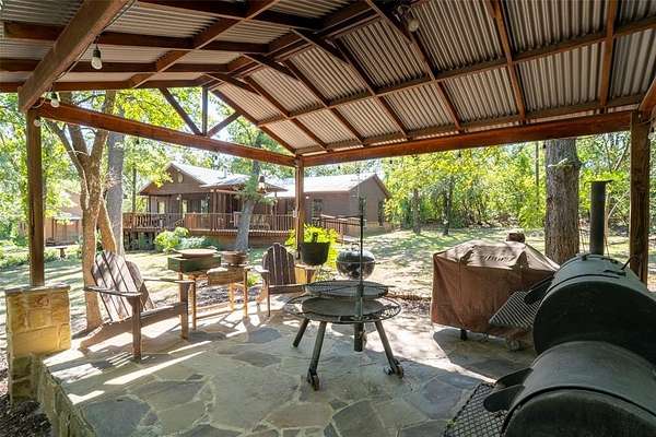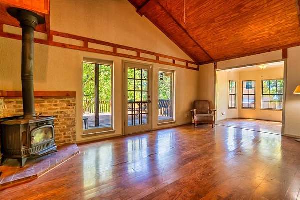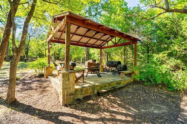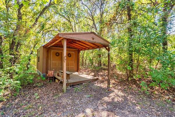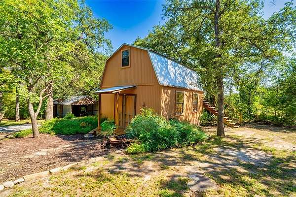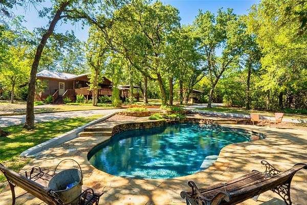 Welcome to 189 Stoney Ridge--a one-of-a-kind rustic farmhouse retreat nestled on 2.27, wooded acres in unincorporated Parker County. Tucked at the back of the property for ultimate privacy, this charming 2-bed, 2-bath home is the perfect sanctuary for those craving peace, nature, and room to breathe--just 25 minutes from downtown Fort Worth and 20 minutes to Weatherford. Step out onto the expansive wraparound deck and take in panoramic views of towering trees and open skies. Whether you're enjoying a morning coffee on the porch swing or entertaining under the covered outdoor kitchen, the setting is pure Texas charm. A breathtaking in-ground swimming pool with stone surround and waterfall offers the ideal space to relax, unwind, or host unforgettable gatherings. Inside, the home exudes warmth and character with wood accents, a cozy wood-burning stove, and thoughtful rustic details throughout. The oversized primary bedroom is a luxurious retreat with numerous large windows that invite the panoramic views of nature indoors. Outbuildings include a detached two-story workshop, an additional smaller workshop, and a carport with enclosed storage area that are perfect for tools, toys, or future conversion ideas. With two gated entrances off a private road, split rail fencing, and frontage on Aledo Farmer Road, this property also offers rare long-term commercial potential. No zoning. No deed restrictions. Azle ISD. With open space, shade trees, and natural terrain, it could easily be converted into a wonderful horse property. Bring your animals, your hobbies, and your dreams--this Texas treasure is ready to welcome you home!