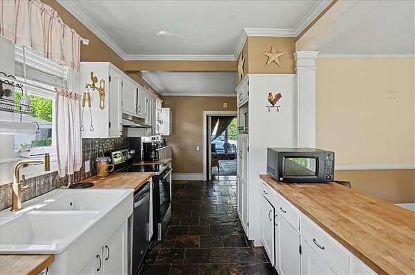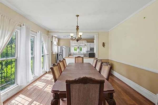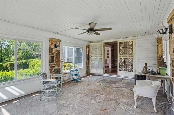 Charming historic hilltop retreat with modern luxuries, nestled on a private, peaceful equine property in the North Georgia mountains. This unique home blends preserved character-original woodwork, flooring, built-ins, shiplap, and classic materials-with high-end fixtures and thoughtful updates. Floor-to-ceiling windows flood the space with natural light, highlighting stone, slate, and wood finishes throughout. The main level features a spacious primary suite with private bath, a sun porch with three walls of windows overlooking the south and east lawn, a formal dining room with original built-ins seating 8-10, and a cozy living room with a wood-burning fireplace framed by custom shelving. A half bath completes the main level, while upstairs offers three additional bedrooms and two full baths. Set on 6.2 acres of lush, seeded pasture (no red clay), fenced in 2023 with 4-rail Centaur and aluminum hotwire, plus 2 additional acres ready for expansion. Includes a storage shed/workshop, large lean-to, and a vintage 40x60 barn with restorable stalls. Rich in history, the Sturdivant House was established by one of the County's founders J. Sturdivant from 1923 - 1927 and Judge Boney's family inhabited the property for decades after; own a piece of Chattooga County history! Own a true piece of Chattooga County heritage, just minutes from town.