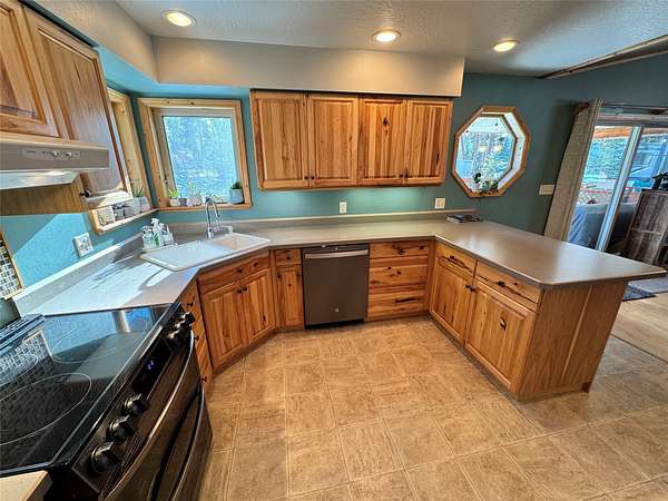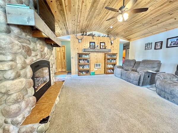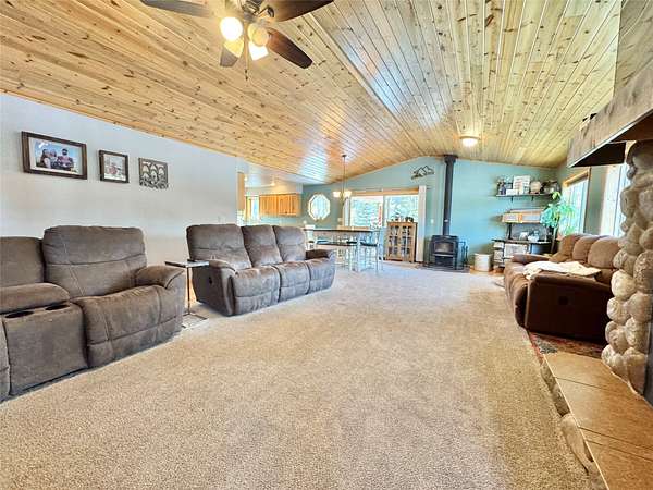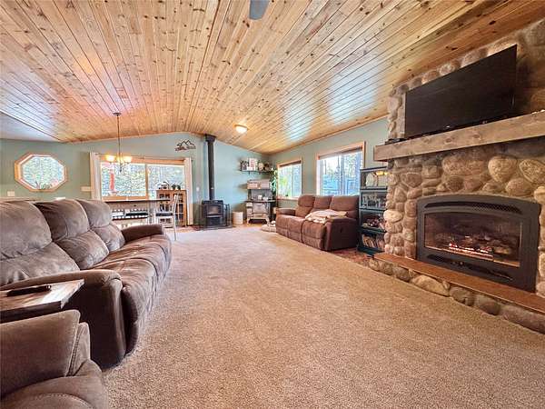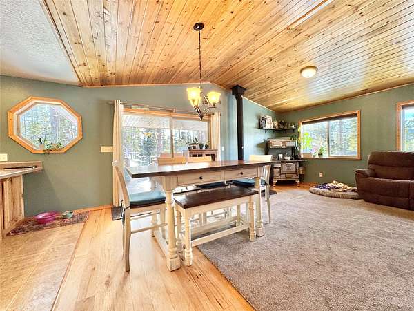 Welcome to 189 Timberlane. This lovely 3-bedroom, 2-bathroom, single-level home has everything you might need. Located in Double Arrow Ranch Phase II, you are close to town, and just off the paved roads. The home has a bonus room that could be used as an office for those wanting to work from home, or hobby room, or whatever your needs might be. The great room and owner's suite have vaulted tongue and groove blue pine ceilings. You have your choice of heating sources with the river rock fireplace being set up for gas, and a wood stove, also in the living room. There are also supplemental electric heaters throughout the house. The kitchen is complete with a storage pantry, custom hickory cabinets and flooring. The dining room offers access to the expansive 16'x20' covered deck, perfect for outdoor dining or simply relaxing. Trees have been thoughtfully planted surrounding the deck to add to the private feel. A paved driveway leads you to the attached two-car garage which brings you into the tiled floor laundry room. Outside, you'll find the detached and versatile 24'x32' heated shop with lean-to, giving you ample room to store your Montana toys. Attached to the rear of the shop is a 12'x12' shed for additional storage. Across the drive from the shop is a gravel parking pad, and on the south driveway, you'll find an RV parking spot with hook-ups. This area of the ranch is one of the most level and also parklike. The rear yards of the neighboring homes adjoin each other making this homes yard feel expansive. It also feels very private because the neighboring homes to the west sit below a bench and it feels like they aren't even there! Seeley Lake Water District Bond debt service of $32.72 per month until approximately 2029.