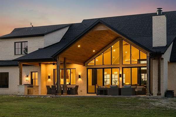 - Attached Grill, Covered Patio/Porch, Lighting, Outdoor Living Center, Rain Gutters
