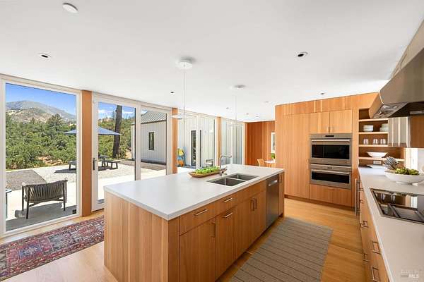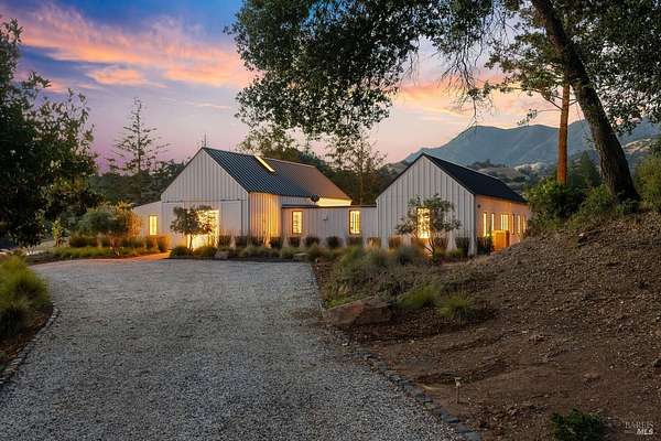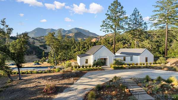 Just beyond the gate, a winding drive leads you to where the world opens up Mount St. Helena rising in the distance, vineyards in the valley below, and light dancing across 20+ acres of unspoiled land. Here, a newly completed modern farmhouse invites you to slow down, stretch out, and savor the rhythm of Wine Country living. Wake to sunrises framed by the soaring windows, spend golden afternoons beneath towering trees, and entertain effortlessly in the sunroom overlooking the pool. Every space is beautifully designed to connect you to the land thoughtfully built with modern style, warmth, and quality. The separate 1BD/1BA suite with a kitchenette offers comfort for visitors, while open acreage awaits vines, horses, gardens, sports courts, and anything you can envision. Secluded yet minutes to Calistoga's vibrant downtown, the 3,903 sq ft main home includes 3 BD/3 BA, and an open layout filled with light. Vaulted ceilings, custom paneling, wide plank floors, and soaring windows distinguish the great room, while the chef's kitchen includes Wolf and SubZero appliances, and a patio for dining al fresco. The primary suite has panoramic views, a spa-like bath, and a large walk-in closet. This is more than a home it's a quality of life rooted in nature, beauty, and possibility.