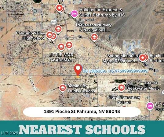 Discover the freedom of wide-open space with this 1.1-acre parcel at 1891 E Pioche Ave, Pahrump, NV! Nestled in a peaceful desert setting with stunning mountain views, this vacant, unimproved land offers endless potential--build your dream home, set up a weekend getaway, or invest in the future of one of Nevada's fastest-growing communities. No HOA, easy access to utilities nearby, and just minutes from town amenities. Whether you're looking to escape the city or start fresh, this slice of Pahrump paradise is ready for your vision. Don't miss out--opportunity is knocking!