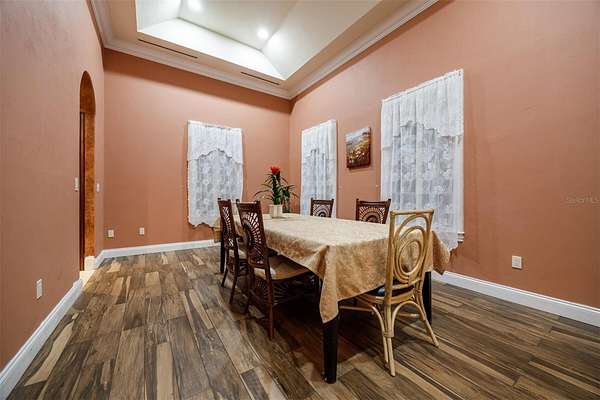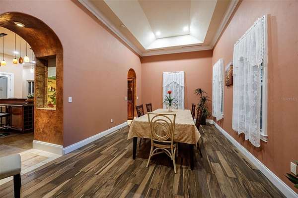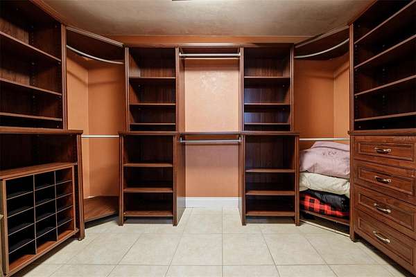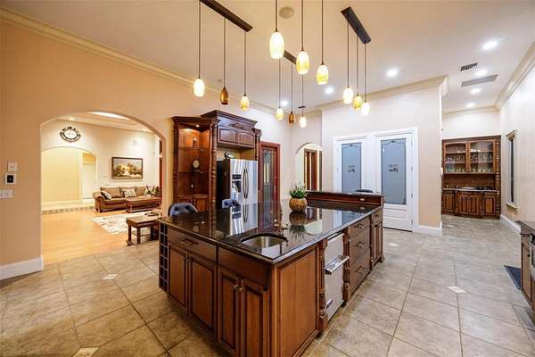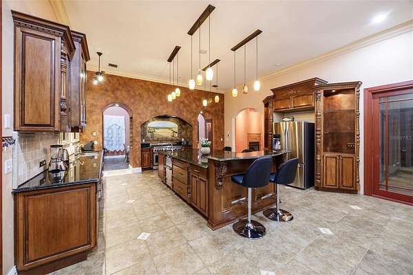 - Built-In Features, Ceiling Fans(s), Central Vaccum, Crown Molding, Dry Bar, Eat-In Kitchen, High Ceilings, Primary Bedroom Main Floor, Solid Surface Counters, Split Bedroom, Walk-In Closet(s), Window Treatments
