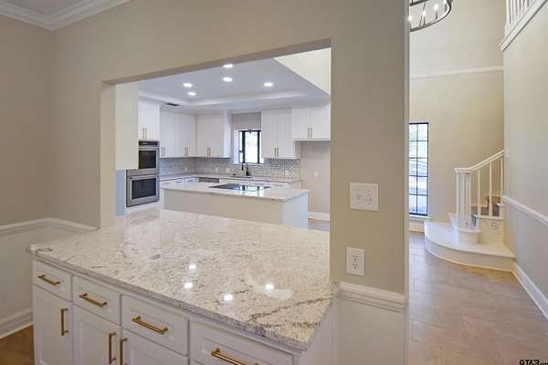 Extensively remodeled and thoughtfully designed, this exceptional home offers the perfect blend of modern comfort and private, natural surroundings. The heart of the home is a stunning, oversized kitchen featuring a large center island, sleek modern countertops, and stainless steel appliances--ideal for both everyday living and entertaining. With 4 spacious bedrooms, 3 full bathrooms, and two additional half baths--including a convenient half bath off the back patio--this home is designed for comfort and functionality. The private primary suite includes a dedicated workout room and an adjoining sauna, creating a true retreat experience. A separate study provides the perfect space for a home office or quiet reading room. The property includes a 3-car garage and a shop building, offering ample storage and workspace. Situated on over 5 beautifully wooded acres, the setting is both serene and private. A peaceful creek at the rear of the property enhances the natural beauty and provides a tranquil backdrop for outdoor living. This unique property combines extensive updates, versatile living spaces, and a rare acreage setting--an exceptional opportunity for those seeking privacy without sacrificing modern amenities.