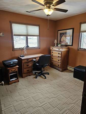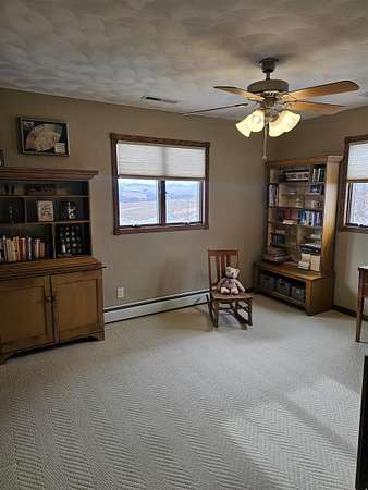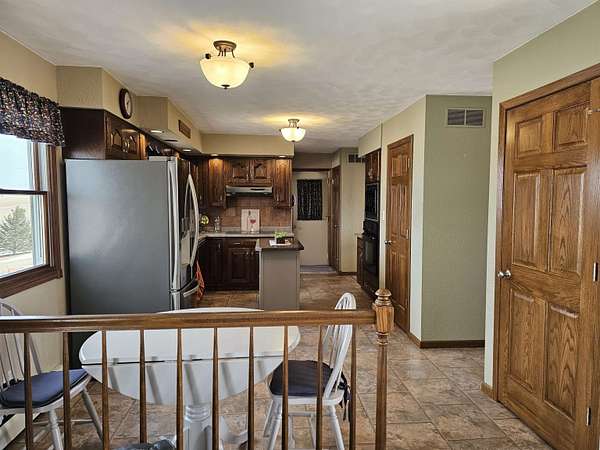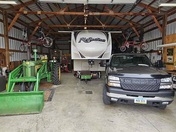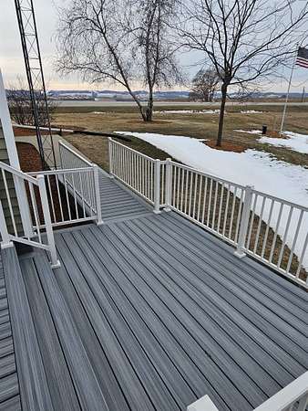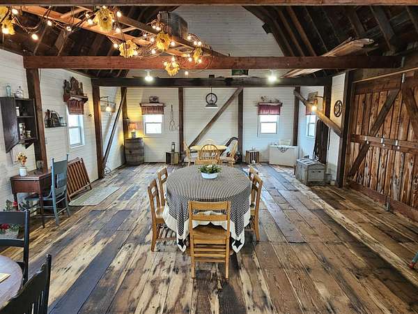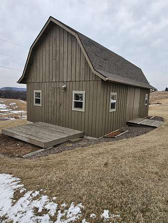 Welcome to this charming, well-maintained walk-out 2 Story 4-bedroom, two-story retreat set against breathtaking views of rolling countryside. Thoughtfully designed and full of character, the home features a spacious layout, rustic country decor touches, an attached 2-car garage. and a capped 22x23 heated workshop. Outside, enjoy a picturesque 20x32 barn rich with rustic country appeal, a 32x54 metal outbuilding ideal for equipment, hobbies, or storage, and an additional 20x24 shed for added versatility. Whether you're enjoying peaceful mornings overlooking the landscape on the large deck or putting the expansive outbuildings to work, this property offers the perfect blend of comfort, functionality, and country living at its finest. All situated on 5.34 acres. Solid oak 6 panel doors and closet doors. 3 of the 4 bedrooms feature 2 closets each. Many recent updates include (but not limited to) maintenance free deck, HVAC, well, siding, windows, driveway, kitchen appliances. Buyers to verify any measurements that are provided (as they are approximate)