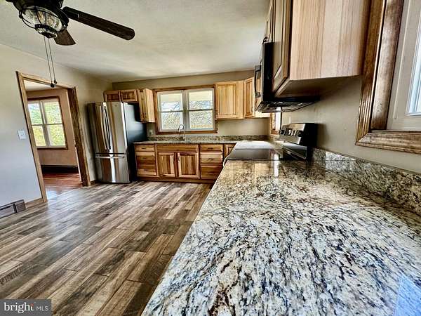 Discover country living at its finest in this beautifully remodeled farmhouse, set on 4.9 acres of flat, usable farmland. This stunning home features 3 bedrooms with the option for a 4th, 2 bathrooms, and exquisite Venetian walls that add a touch of elegance. Recent updates include a brand-new roof, heating system, windows and electrical. Everything top to bottomis new! The property also boasts a massive two-level barn, perfect for storage, livestock, or a workshop, and a detached 2-car garage for added convenience. Outside, the property truly shines with lush fruit trees and thriving grapevines, creating a picturesque setting and offering fresh produce right from your own backyard.There's even a small stream that runs along the back of the property! A second home was previously on the property but torn down due to condition the concrete pad still remains For future use! With ample space for farming, horses, or simply enjoying the peaceful surroundings, this is the perfect retreat for those looking for a blend of modern upgrades and classic farmhouse appeal. Don't miss this rare opportunity to own a move-in-ready country home!