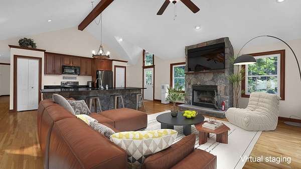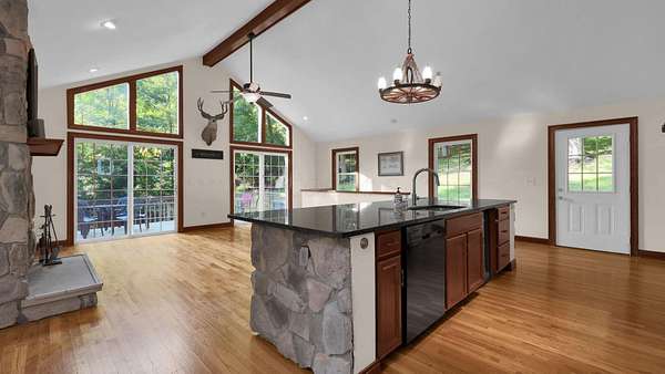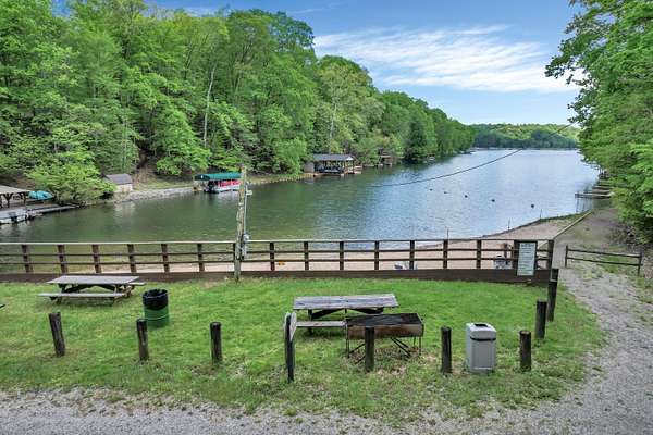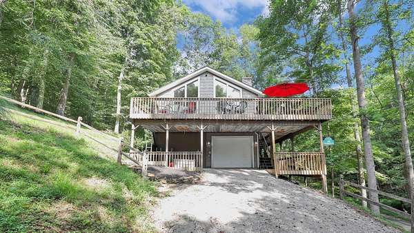 Get away from it all in this charming 4 bedroom, 2 full, 2 half bath cabin in beautiful Hide-A-Way Hills. Cabin sits on 2 lovely wooded lots totaling 1.59 acres, just 200 yards from the North Docks on the north end of the Lake of The Four Seasons. Open floorplan features great room flooded with natural light and amazing views. Hardwood floors, cherry cabinets, granite counters and updated appliances. Great room opens out onto an expansive wraparound deck, where you can relax among the treetops. Main level also has 2 bedrooms, a full bath and a half bath. Full, walkout lower level has 2 bedrooms, a full bath, laundry area (W/D stay) and spacious area for rec room or family room. 2 level deck offers multiple areas for outdoor relaxation or entertaining. Many recent updates include: New HVAC system 2023, H20 tank 2023, new roof and gutter guards 2022, new refrigerator 2023. House is wired for a generator, with an additional ''generlink'' hookup from South Central Power recently installed, which enables a generator to power the entire house. EV charging port installed 2024. Deck is ''hot tub ready'', with junction box for power. Hide-A-Way Hills is a gated resort community offering 5 lakes for swimming, boating and fishing, Lodge w/microbrewery, 9-hole golf course and clubhouse, pool, tennis and pickleball courts, shooting range, ORV track, outdoor chapel, 24 hour security, grass airstrip, playgrounds and so much more!