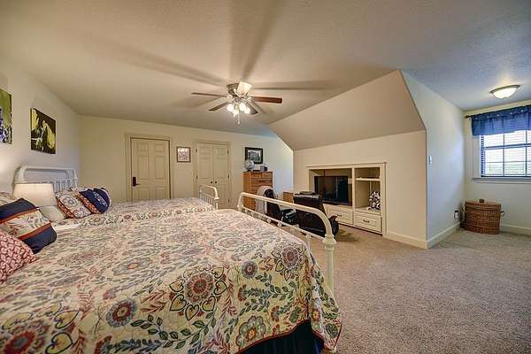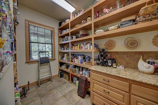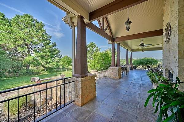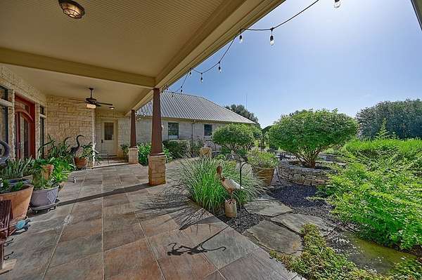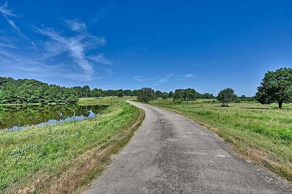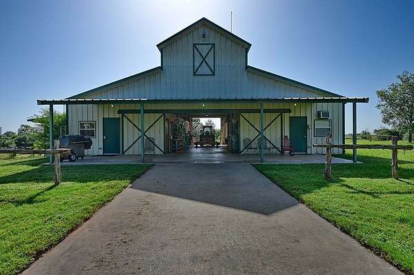 The exterior offers spectacular views of open pastures, tree clusters, and serene ponds, 1,779 sq ft of wide covered porches on three sides of the home, a concrete drive from entrance to home and barn with extra guest parking, a whole-house generator, a two-acre fenced yard with irrigation, hardscape, lush landscaping, and raised garden beds, plus a fenced yard off the primary suite.