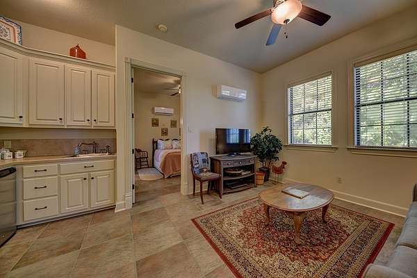Across the breezeway, a charming 475 sq ft guest cottage offers comfort and privacy. The 2,496 sq ft barn includes two air-conditioned workshops, a large drive-through center hall, a bunkroom with private bath, a hidden three-bay tractor shed, and a 12-ft wide covered porch across the front. Multiple outdoor living areas and gardens create a sense of seclusion and serenity.