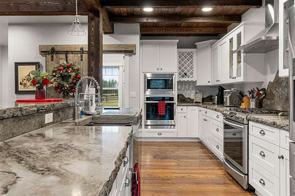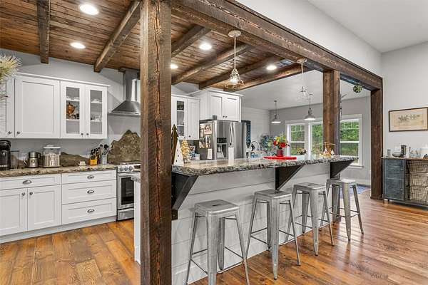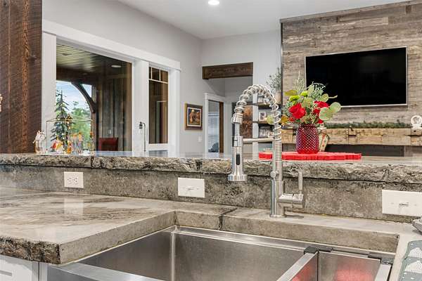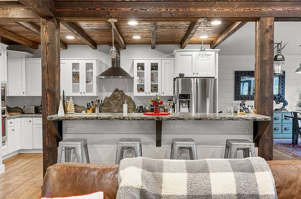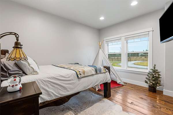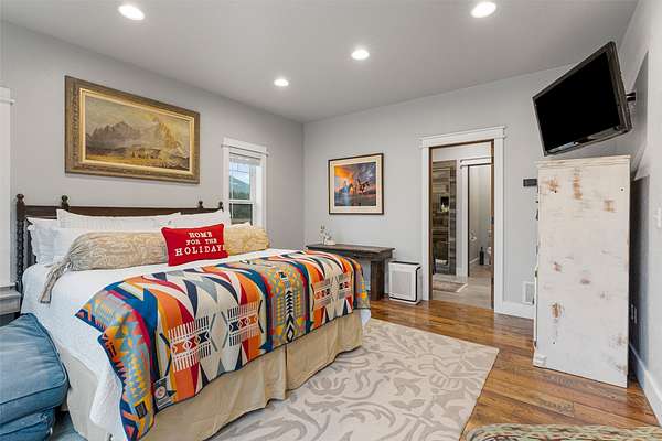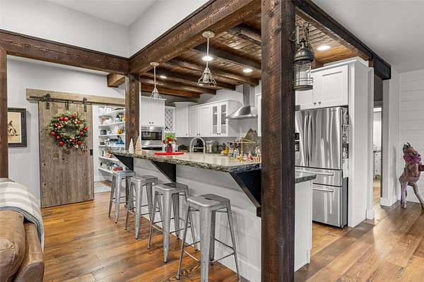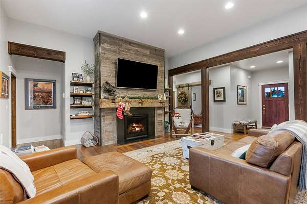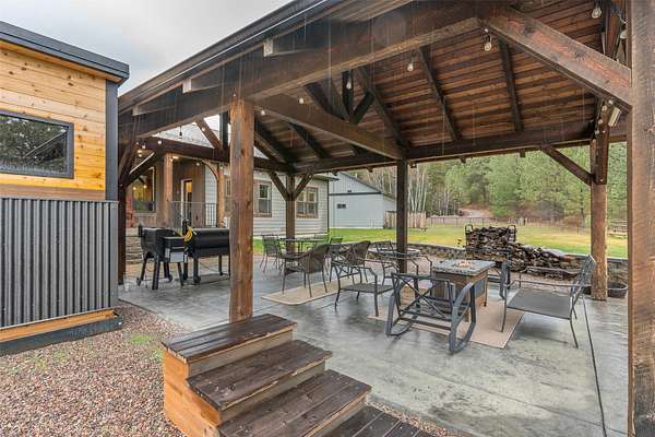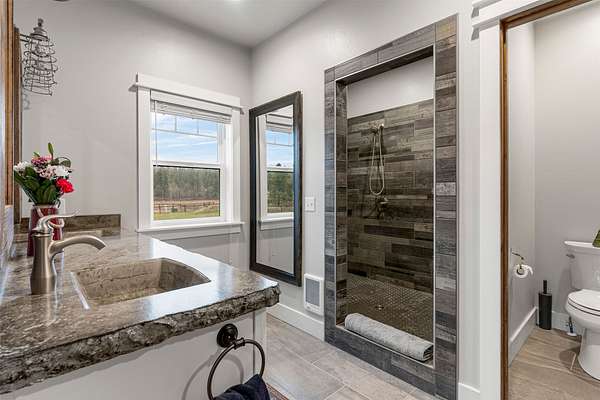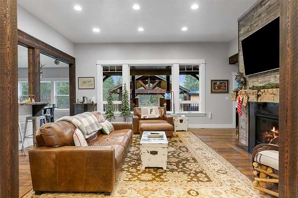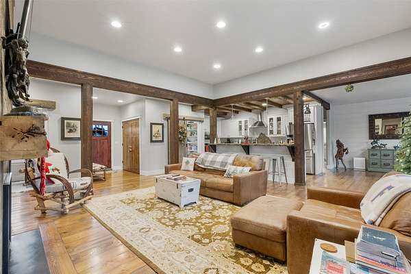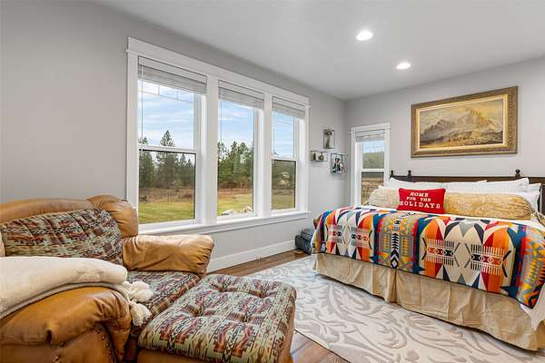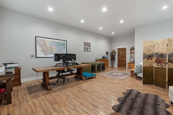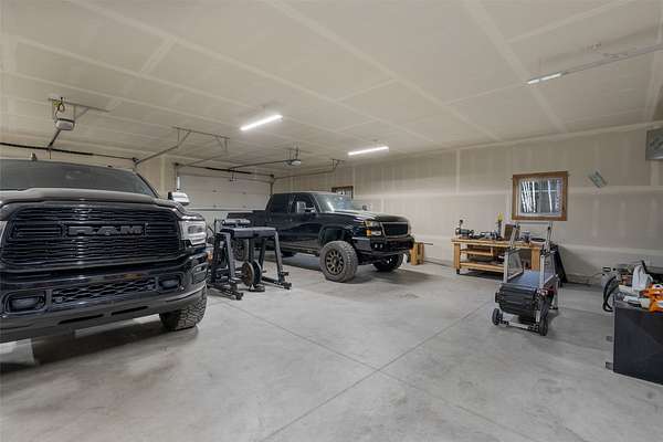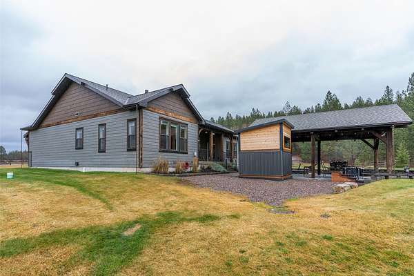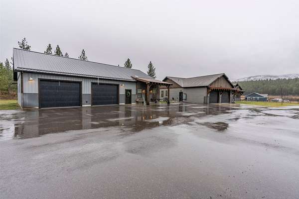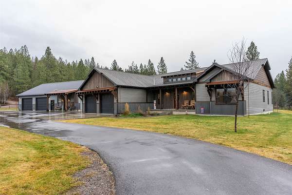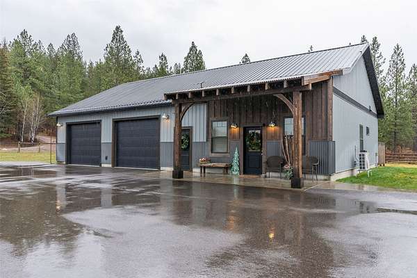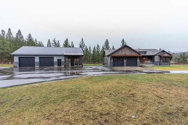Incredible custom, furnished, well appointed one level home and shop. The main home features three bedrooms, three bathrooms and an office. Two of the three bedrooms feature their own en suite bathrooms. The open concept kitchen, living room and dining room are perfect for entertaining and feature high end finishes including custom cabinets, beautiful concrete counter tops, high-end appliances, wide plank wood flooring, extensive exposed wood beam work, high ceilings and a cozy fireplace, perfect for cool Montana days. The main home features an attached oversized two-car garage, walk-in pantry and mud room. Included on the property is an insulated and heated 40'x60' shop with additional guest quarters and office space within. Exterior features include a custom handmade pergola, perfect for entertaining, underground sprinklers and paved driveway. All of this located just minutes from downtown Missoula yet still has a private, country feel. Some exclusions apply with the furnishings so see agent for details.