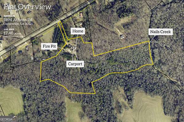 Est $3,657/moTWO homes on 17.4 private acres with Nails Creek running along the property line. This rare property offers endless potential for multi-generational living, rental income or a private retreat. Tucked away down a long driveway, the land features a beautiful mix of wooded acreage and usable space. Additional highlights include a barn, brand new deck and carport.