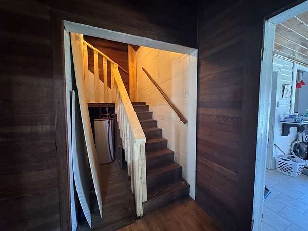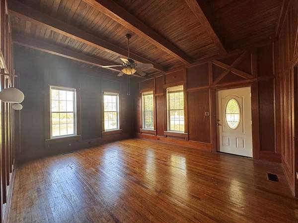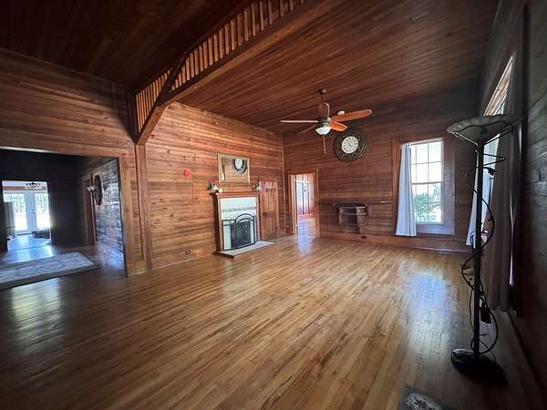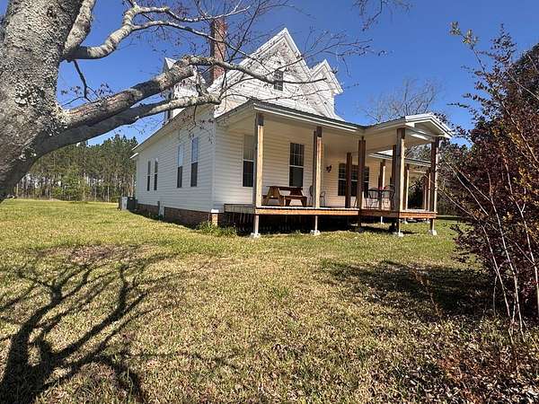 Welcome to your private slice of South Georgia living! Situated on approximately 3 acres, this 4-bedroom, 2,230 sq ft home offers space, charm, and peaceful views. Inside, you'll find an inviting layout filled with high ceilings, natural light, warm wood walls and original hardwood floors. A unique fireplace anchors the open dining and living area—perfect for gathering and entertaining. The primary suite is conveniently located on the main level for added comfort and accessibility. Sharing a bathroom and common space, the two bedrooms upstairs are ready for you to finish them off with your personal touch. Step outside to enjoy pecan trees, a serene pond view and wide-open space, ideal for relaxing or creating your dream outdoor retreat. A large outbuilding with electricity provides endless possibilities for storage, hobbies, or a workshop. It's large enough for all three! Enjoy peaceful wooded views and breakfast on the large front porch. If you're looking for space, character, and country tranquility just minutes from town, this property is a must-see!