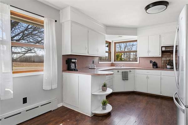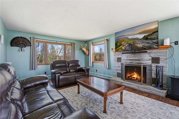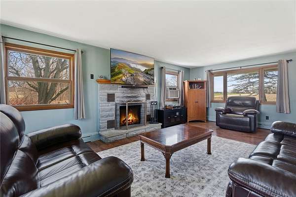 How would you like 3 acres, a fenced-in yard, the sound of a nearby creek, easy access to over 200 acres of protected land and 3,400 feet of shoreline on Cayuga Lake, all while being just minutes to marinas, parks, Cornell University, and downtown Ithaca? Well, you found it. Welcome to 1895 Lansing Genoa Townline Rd. Inside you're welcomed by a spacious foyer with slate flooring. Through a charming Dutch door, natural light pours into the main living spaces. The kitchen is both spacious and functional, connecting easily to a formal dining room featuring a bay window and its own Dutch door leading out to the front porch. From the dining area, you're drawn into a cozy living space centered around a wood-burning fireplace. Just beyond, two bedrooms are thoughtfully positioned with a full bathroom in between. The full basement is complete with laundry, a second wood-burning stove, and plenty of room for storage, or additional living space. Outside, the property opens up to a fenced-in yard while the remaining acreage offers open green space, and outbuildings. If you've been waiting all winter for the right property to come along-something with land, proximity to the water, and space to actually enjoy it, this is it.