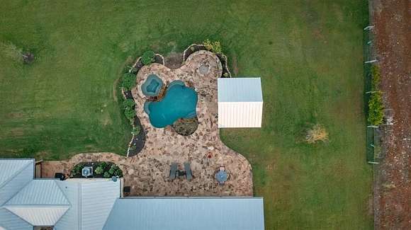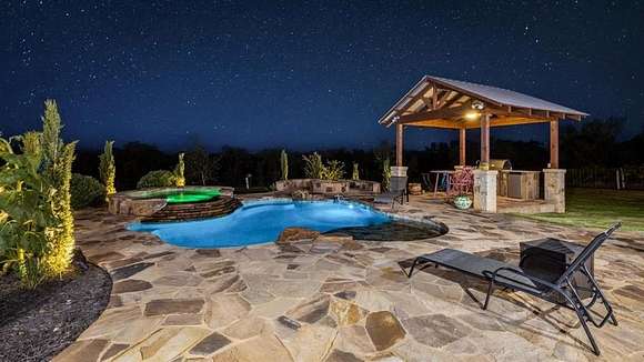 Located 0.4 miles from Mason, TX, the Lane Ranch features a 3,000 sf limestone home, a guest suite, and productive fruit trees & grapevines. Property includes a skeet & trap field, a water well (10+ GPM per owner), rainwater collection system, and diverse hunting & recreational opportunities. Custom 3-bed, 2 1/2 -bath Hill Country home with a Keith Zars custom pool & spa with a waterfall & cooking station, flagstone deck, gas fireplace, & much more. 1-bed, 1-bath guest suite in the barn with a full kitchen suite & open-concept living room. Fiber optic internet. 4,000 sf insulated barn with 4 RV-size overhead doors, LED lighting, & loft for storage. Equipped & managed for low-fence hunting, the ranch has had many high-scoring whitetail & axis. Owner has also reported many turkeys & hogs. Many cleared lanes, trails, & excellent brush management making great habitat. Gentle roll, varied terrain & 3 solid ponds along with a portion of Comanche Creek running through the back of the ranch.