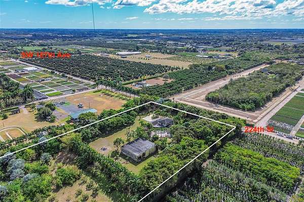 Escape to Miami's countryside in this exceptional Redlands estate - a rare blend of luxurious family living, income-producing agriculture, & commercial versatility on nearly 5 ac of prime AU-zoned land. Nestled in the heart of the Redlands agr district, this ~4.73-acre gem features mature avocado & mango trees. With active agricultural classification, enjoy ultra-low property taxes & potential side income from fruit sales. The spacious main residence offers 4 large bedrooms, 3 indoor baths, 1 cabana bath & an in-ground pool (needs refinishing). Highlights include a kitchen with solid hickory cabinets & double wall ovens, an updated primary bathroom, an updated cabana/pool bath (patio access only), solar water heater for energy efficiency, recent dual AC systems (5-ton 2025 + 3.5-ton ~2023), electric gate opener, impact windows in key areas, full accordion hurricane shutters, & a durable 40-year dimensional shingle roof (2007). Well water + 2 septic tanks. A functional 4 zone irrigation system covers the entire property (minor head & some pipe replacements needed).