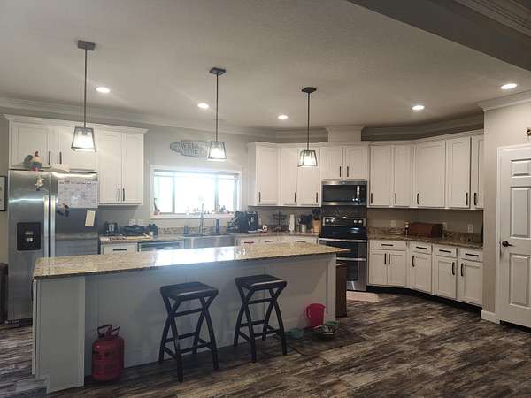 415 ACRE RANCH -BORDERS LINDLEY CREEK! This property is set up and ready for you to bring your livestock! No restrictions, so endless possibilities. The acreage is approximately 60% open, has 5 ponds, and 2 spring fed streams. Recently used as a cow/calf operation - everything you need is in place. From fencing, feeders, automatic waterers, grain bin, & working pen & chute. There is even a feedlot in place. Multiple sheds for machinery & equipment, and a 7 stall horse barn with automatic waterers, a breeding stall, and a tack room. Still don't have enough buildings? How about an 80' x 175' shop with concrete floors, 600 amp service, and a 1 bedroom, 2 bath apartment with a loft? So, where are you going to live? A full length covered front porch welcomes you into a 2400 sq ft modular which features an open floor plan, 4 bedrooms, 2 baths, and 2 living areas. The spacious kitchen dining combo has stainless appliances, a large center island, and granite counter tops. The master suite is a nice size. There is a walk in closet, and an ensuite bath which has a large walk in shower, a double sink vanity, and a soaking tub. A split floor plan has the other 3 bedrooms, a full bath, and a family room with a gas fireplace. Sliding doors from the dining area lead to a large screened in area, and a covered deck to the side - perfect for entertaining. The large back yard has a concrete slab with a firepit. An added bonus is the original home that could be brought back to life with some TLC - being offered as is - seller will not make repairs. Here is your chance to own the ranch you've always wanted! This is not a drive by property - must be accompanied by an agent.
