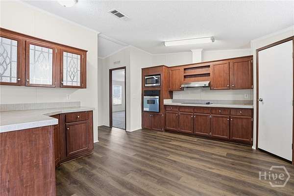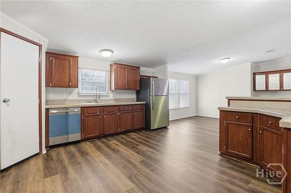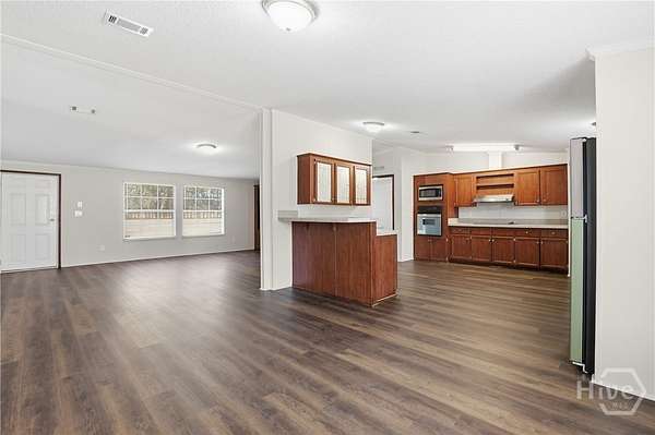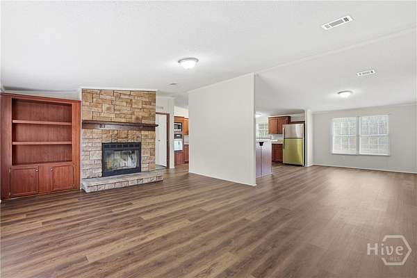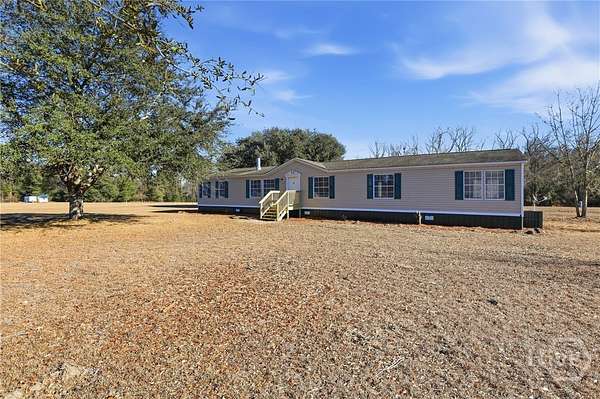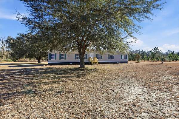 Set on 3.5 wide open acres, this property offers the space, privacy, and usability that are becoming increasingly hard to find. The land is mostly cleared and level, making it ideal for animals, equipment, outdoor projects, or simply enjoying unobstructed views. Beautiful mature oak trees frame the yard and provide natural shade and character for the property. Exterior features include two wired storage sheds, a shipping container for secure storage, and a lean to attached to the container for additional covered space. Brand new decks create multiple areas for outdoor entertaining or relaxing. The home features metal skirting, a fairly new roof installed approximately three to four years ago per seller, and a brand new HVAC system. There is also an abundance of deer as shown in one of the photos. Inside, the home offers 2,432 square feet with fresh paint and new flooring throughout. The large den is a standout feature, complete with a built in bar that makes the space perfect for entertaining or gatherings. The kitchen has been updated with new stainless steel appliances and offers ample cabinet and counter space. The master bedroom includes a spacious bathroom with a garden tub and double vanity. A fireplace adds warmth and character to the living area, while the layout provides generous room sizes throughout the home. This property combines open acreage, modern updates, and functional outbuildings in one rare package. Ideal for those seeking room to spread out without sacrificing comfort or convenience.