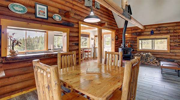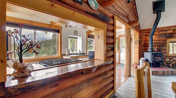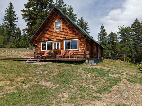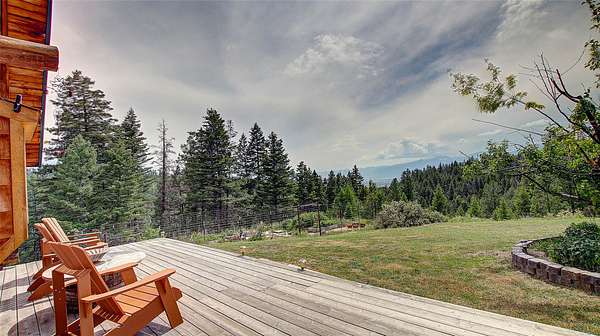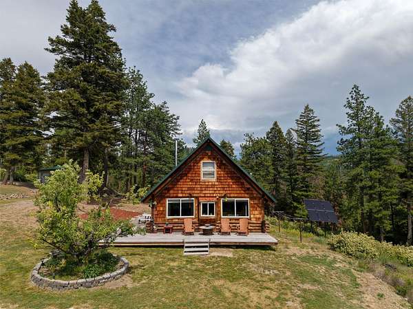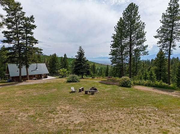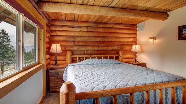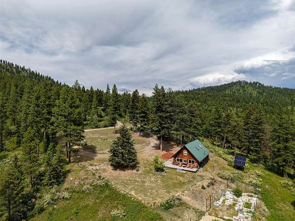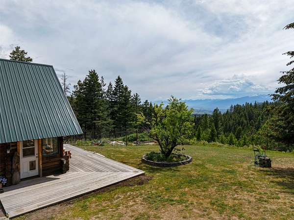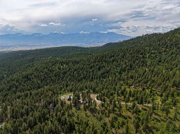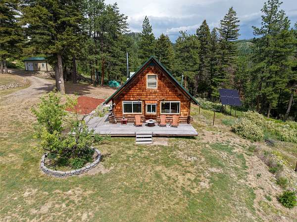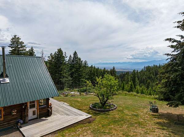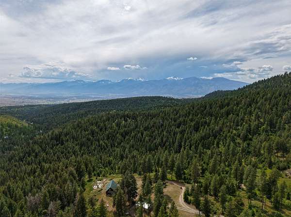 Amazing views of the Bitterroot Valley and game preserve from this peaceful off-grid home just 25 miles from Missoula! Experience the serenity of Montana living at this beautiful property, tucked away on 10.14 acres of land. Escape the hustle and bustle while staying comfortably connected with a private well, solar power, a backup generator, propane, and a cozy wood stove ensuring year-round comfort. Built in 1987, this 1,056-square-foot cabin offers an open floor plan that blends rustic charm with thoughtful functionality. Step into the kitchen, where you can enjoy the incredible views from the large windows while you prepare your meals. Finished with tile floors, stone countertops, and a striking log accent wall that enhances the warm and inviting space. The living room boasts high, vaulted, and beamed ceilings that create a spacious feel. Complemented by a warm and inviting wood stove and natural log walls that add timeless character. The main floor bedroom is a peaceful haven, featuring log detailing that ties into the rustic elegance. There is a full bathroom that even provides space for a stackable washer and dryer. Upstairs you have an additional bedroom with a skylight that is great for gazing at the night sky. There is also an abundance of closet and storage space. Outside, the property truly shines-relax or entertain on the deck, tend to your garden with its cinder block garden beds that is surrounded by an 8 foot fence with a drive through gate, or enjoy the bounty from the plum trees and raspberry bushes. There is a double car garage that offers a lot of space to store all of your lawn equipment or recreational vehicles. A fire pit, 100-yard shooting range, and breathtaking mountain views complete this outdoor paradise. If you're looking for a peaceful getaway immersed in nature, this unique Montana home is your perfect escape.