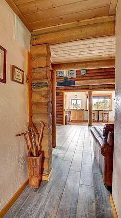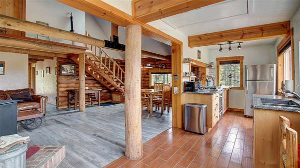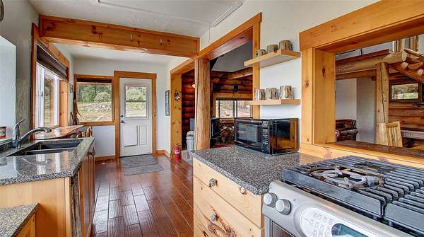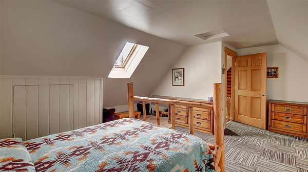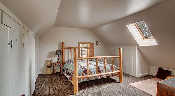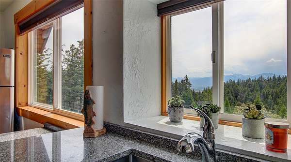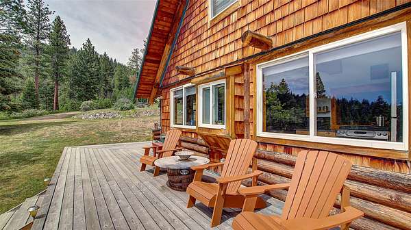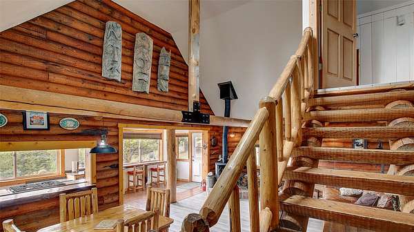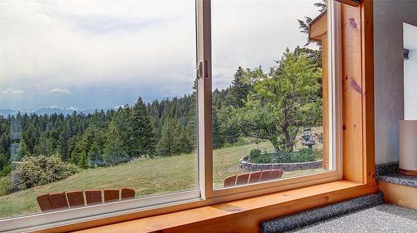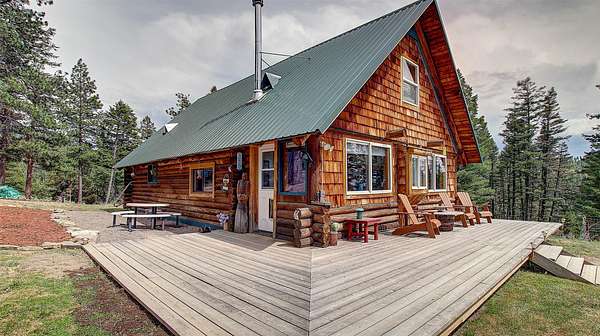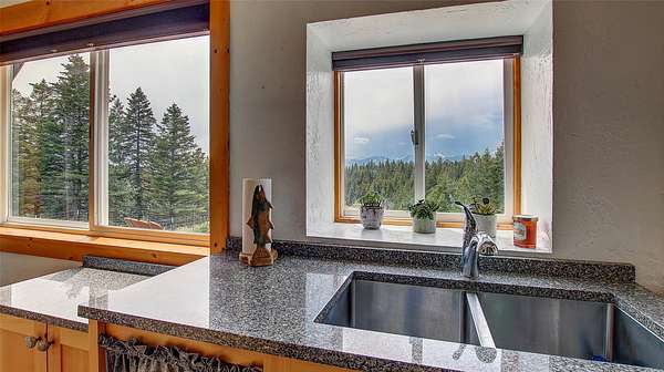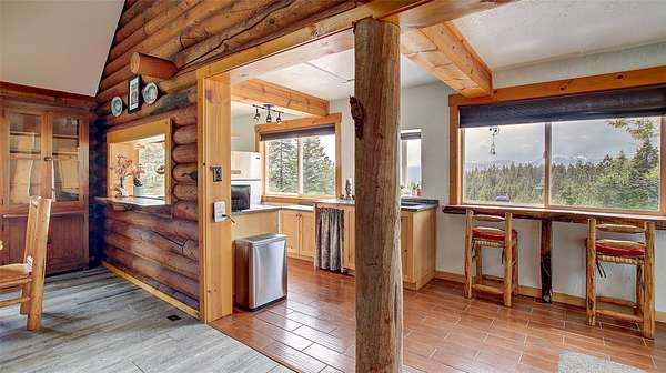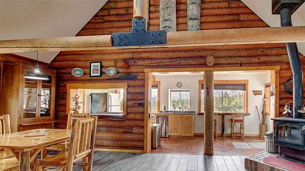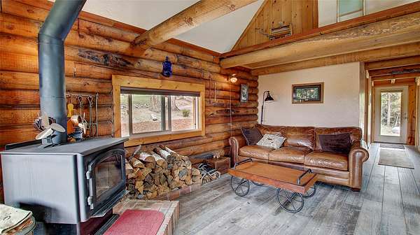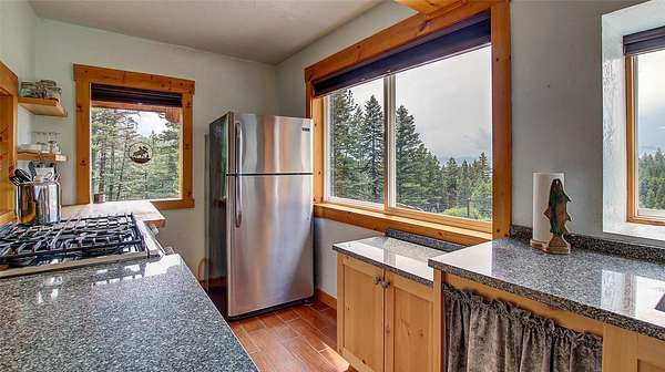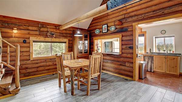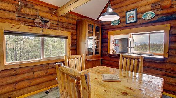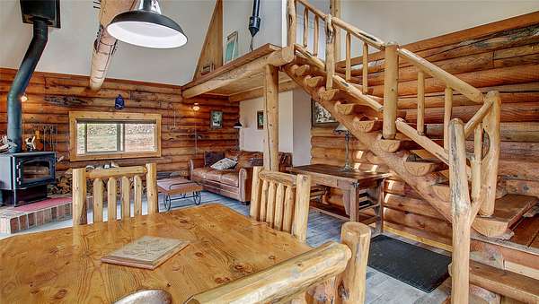 Amazing views of the Bitterroot Valley and game preserve from this peaceful off-grid home just 25 miles from Missoula! Experience the serenity of Montana living at this beautiful property, tucked away on 10.14 acres of land. Escape the hustle and bustle while staying comfortably connected with a private well, solar power, a backup generator, propane, and a cozy wood stove ensuring year-round comfort. Built in 1987, this 1,056-square-foot cabin offers an open floor plan that blends rustic charm with thoughtful functionality. Step into the kitchen, where you can enjoy the incredible views from the large windows while you prepare your meals. Finished with tile floors, stone countertops, and a striking log accent wall that enhances the warm and inviting space. The living room boasts high, vaulted, and beamed ceilings that create a spacious feel. Complemented by a warm and inviting wood stove and natural log walls that add timeless character. The main floor bedroom is a peaceful haven, featuring log detailing that ties into the rustic elegance. There is a full bathroom that even provides space for a stackable washer and dryer. Upstairs you have an additional bedroom with a skylight that is great for gazing at the night sky. There is also an abundance of closet and storage space. Outside, the property truly shines-relax or entertain on the deck, tend to your garden with its cinder block garden beds that is surrounded by an 8 foot fence with a drive through gate, or enjoy the bounty from the plum trees and raspberry bushes. There is a double car garage that offers a lot of space to store all of your lawn equipment or recreational vehicles. A fire pit, 100-yard shooting range, and breathtaking mountain views complete this outdoor paradise. If you're looking for a peaceful getaway immersed in nature, this unique Montana home is your perfect escape.