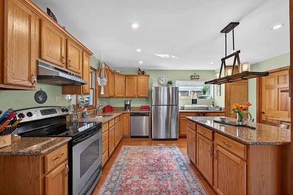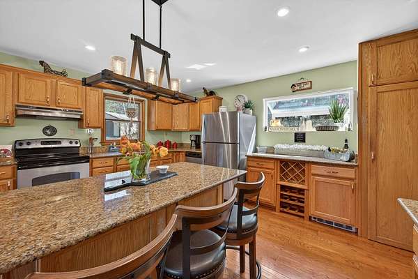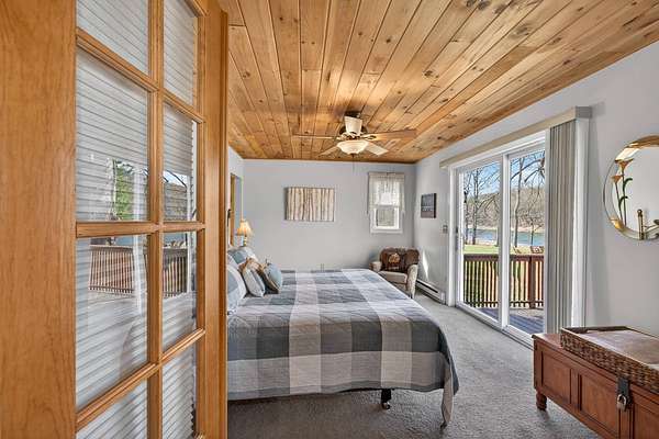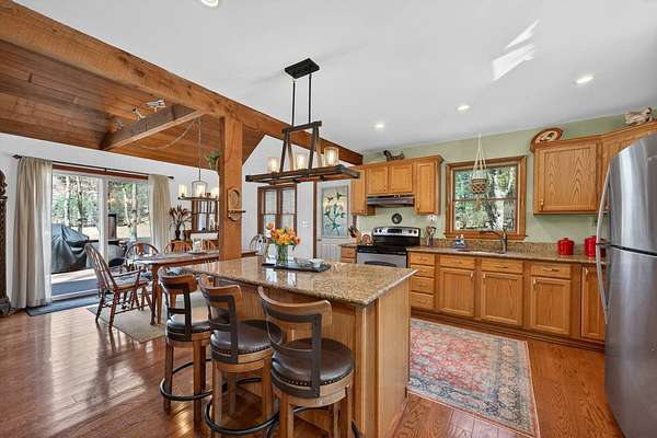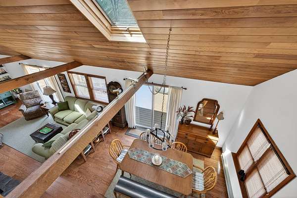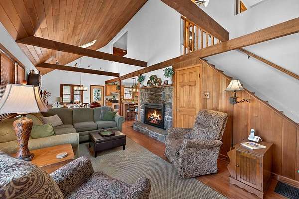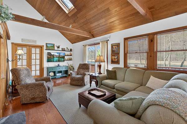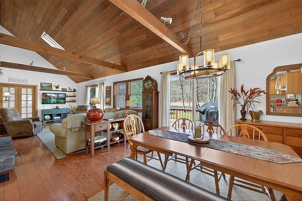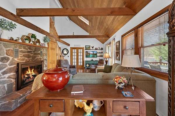 Set along the scenic Delaware River, this charming saltbox-style home offers the perfect blend of classic design and peaceful waterfront living. Featuring 4 spacious bedrooms and 2.5 baths, the home welcomes you with a high ceiling, skylights, and a stunning stone fireplace that creates a warm, inviting focal point in the living area. The lovely country kitchen is ideal for gathering and entertaining, while large windows invite in natural light and serene river views. Step outside to a generous rear deck overlooking the water-perfect for relaxing or hosting-while a walkway leads you down to the river's edge. Situated on 3.2 level acres, the property boasts a beautifully maintained yard with mature trees providing both shade and privacy. A beautifully maintained yard, this property offers a peaceful retreat, made even more special by the sight of Bald Eagles soaring overhead.