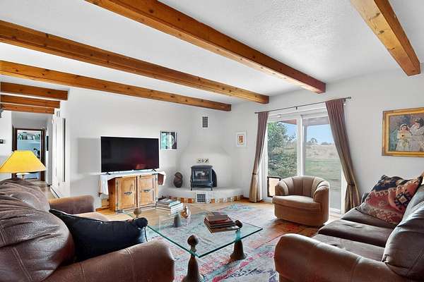 Welcome to Haven Ranch - A Private Southwest Retreat with Panoramic Mountain Views Nestled on over 6 serene acres, Haven Ranch is a charming 3-bedroom, 2-bath southwestern-style ranchito that captures the spirit of New Mexico living. Surrounded by stunning mountain views, this horse-friendly property offers the peace, privacy, and endless skies you've been searching for. Step inside the main residence to find authentic southwestern character, including exposed wood beams and a cozy wood-burning stove that adds warmth and ambiance on cool desert nights. Large, new triple-glazed Anderson windows fill the space with natural light while framing stunning vistas in every direction. Square footage is based on public records. Just steps from the main home is a detached studio casita with water and heat-ideal as an art studio, home office, guest space, or easily upgraded to a full accessory dwelling unit or in-law suite. For equestrian enthusiasts, the property features an 800-square-foot barn and workshop, perfect for horses, hobbies, or additional storage. Enjoy riding directly on the property, in the corrale or explore the miles of adjacent scenic trails. The San Marcos Feed Store is just minutes away, adding daily convenience for horse owners. Additional highlights: - Private well with strong flow volume - Septic system in place - New roof replaced in 2020 and Anderson windows installed in 2015 - with a fully transferable lifetime warranty - Formerly part of a now-inactive HOA-no current dues or restrictions - Priced as-is, reflecting room for your personal touches and upgrades: bring your imagination! Whether you're seeking a tranquil retreat, a working horse property, or a place to create your own desert haven, Haven Ranch offers unmatched value and potential. Don't miss the chance to own this one-of-a-kind New Mexico gem! Square footage is based on public records. By appointment only.